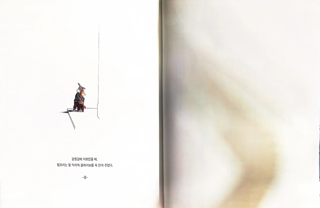 험프리가 여우의 이름을 불러주며 꼭 안아주는 것으로 끝나는 이 그림책의 이후를 생각해 본다. 험프리는 비단 여우에게 의존만 하는 존재로 남지 않을 것이다. 험프리가 간직하고 있는 야생의 정체성을 통해 여우는 잃어버린 혹은 적응을 위해 모두 버린 자신의 본질을 찾게 될 것이다.