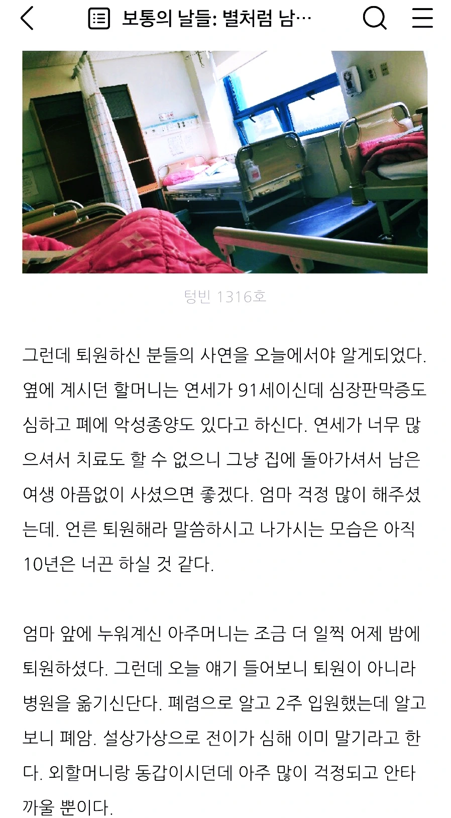 워낙 아파도 열은 나지 않는 특이한 체질의 나는 몇 년 전 폐렴으로 4박 5일 입원할 때도 체온은 0.1도도 오르지 않았다.