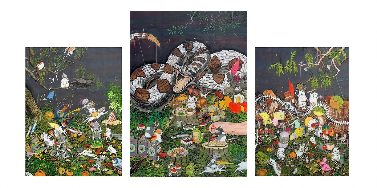 Jake the dog(이하 JD) | 나는 대부분의 작품을 전통 동양화 기술, 특히 약 14세기의 비단채색 기법으로 제작한다. 어렸을 때 나는 전통회화의 특별한 아우라에 푹 빠져서 박물관에서 오래된 유물을 보면서 많은 시간을 보냈다. 따라서 나는 그 전통회화의 아우라를 현대적 맥락과 함께 현대미술에 적용하고자 한다. 물론 전통회화 기술의 전승이 나의 주된 관심사는 아니다. 그것보다 나는 현대미술을 하기 위해 전통회화의 정신을 그저 빌려올 뿐이다.
