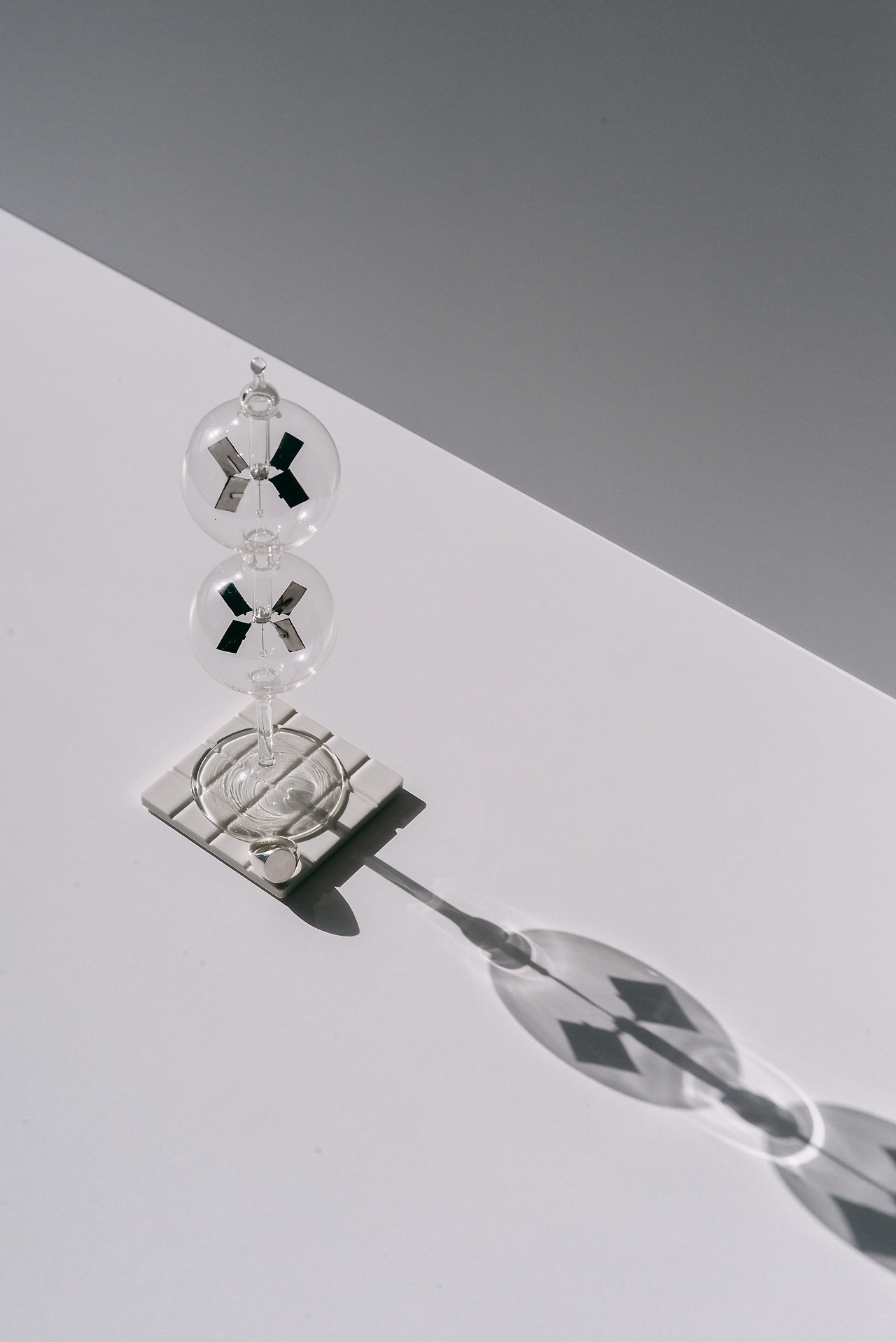 "한 영화를 감명 깊게 보고 간직하게 된 물건이다. 이것은 빛을 받으면 유리구 안의 쇠붙이가 회전한다. 위, 아래의 회전 방향이 반대이다. 돌고 돌아도 결국 만날 수 없는 관계인 셈이다. 바로 옆에 있음에도, 자연스럽게 흘러가고 있다고 생각하는 그 상황이 상대에게는 반대로 흘러가는 것일 수 있다. 누군가의 처음이 누군가에겐 마지막이듯. 영화 <나는 내일, 어제의 너와 만난다>를 이것만큼 잘 표현해주는 물건이 있을까. 비록 소품 가게에서 잠깐 노출되는 오리지널 장식품은 유리구가 하나였지만, 개인적으로는 이것이 더 마음에 와 닿는다."