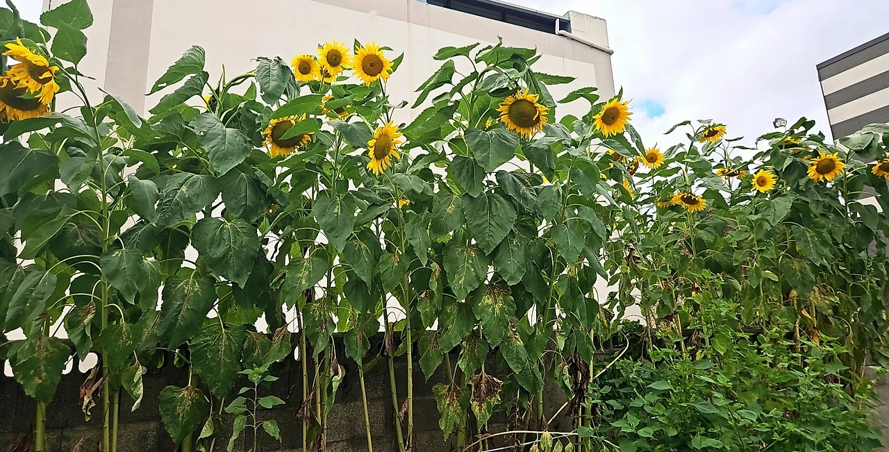 <포항시립연일도서관 옆 담장에서 하늘바라기 하는 꽃들>