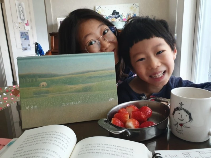 엄마의 공간이라는 것을 아이들에게 말하니 책상에 앉아 보기도 하고 책장에 무슨 책이 꽂혀있나 보기도 했다. 아들은 내 책상 앞에 자기 의자를 끌고 와서 앉았다.