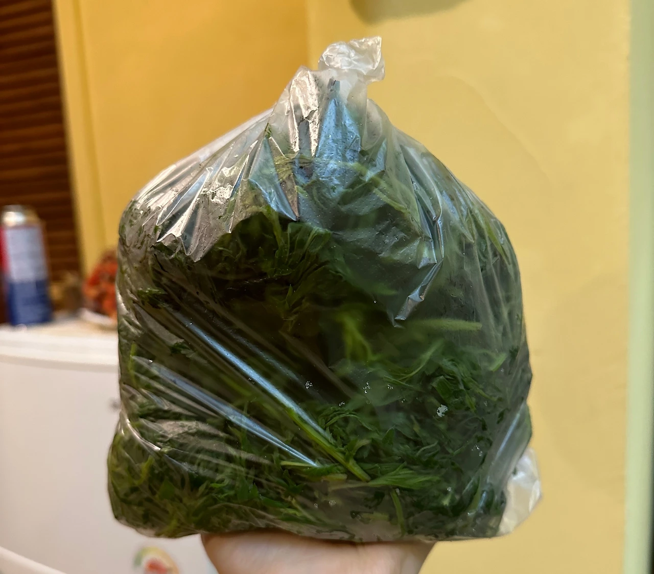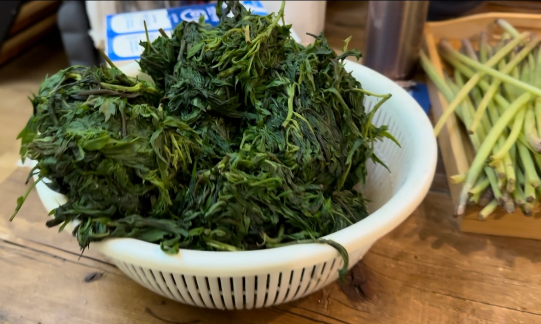 두 분이 열심히 따 온 쑥은 물에 몇 번을 삶고 나서도 비닐 세 봉지를 거뜬하게 채울 정도로 많았다. 따온 쑥은 그대로는 못쓰고 여러 번 삶고 물을 짠 뒤, 방앗간에서 가루로 빻아 떡으로 만드는 과정을 거친다. 쑥을 세네 번 삶고 물을 짜서 보관하는 단계만 부모님과 같이 해봤는데, 이 하나의 과정도 손이 꽤 가서 역시 음식은 정성이라는 생각이 다시금 들었다.
