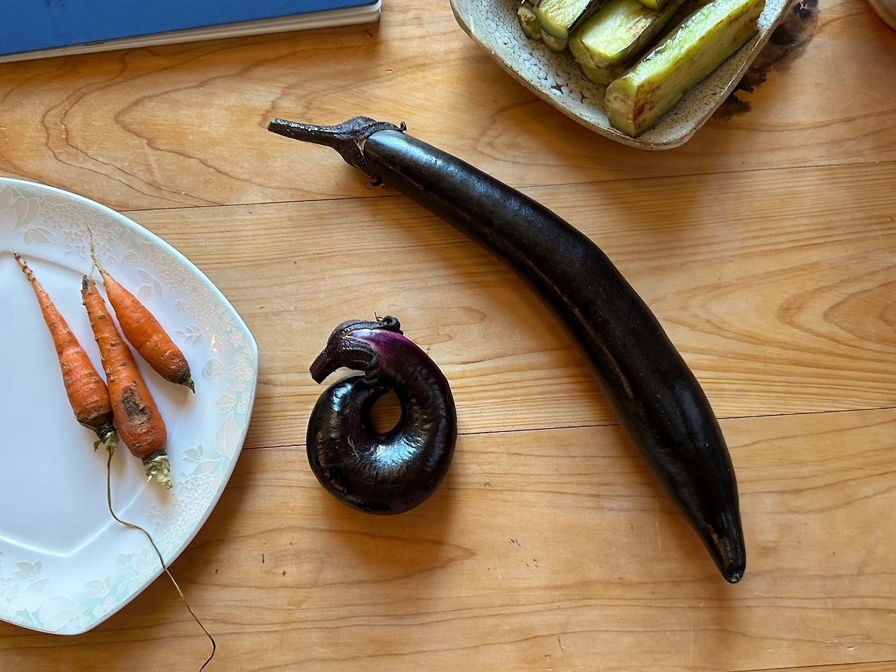 그중에는 직접 키운 농작물도 있었다. 옆집 가지는 쭉쭉 예쁘게 컸는데, 우리 집 가지는 똘똘 말려 도넛처럼 생긴 걸 보면 바로 옆 땅인데 이렇게 다를 수 있다는 것이 신기하고 재밌었다. 분명히 못생기고 맛없어 보이지만 왠지 정겨워서 맛이 궁금해지기도 했다.