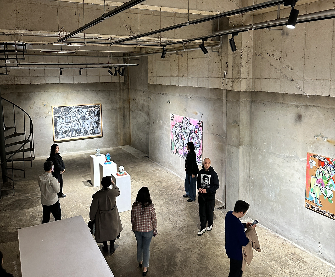 지인의 초대를 받아, 부산의 카린 갤러리를 방문했다. 강목 작가의 '목성(JUPITER)' 전시가 진행 중이었다. 활발히 활동하고 계신 분이라 그림체가 눈에 익었다. 동글동글한 얼굴에 빛나는 눈동자, 장난기 가득한 표정과 낙서들이 그림을 더 생동감 있게 했다.