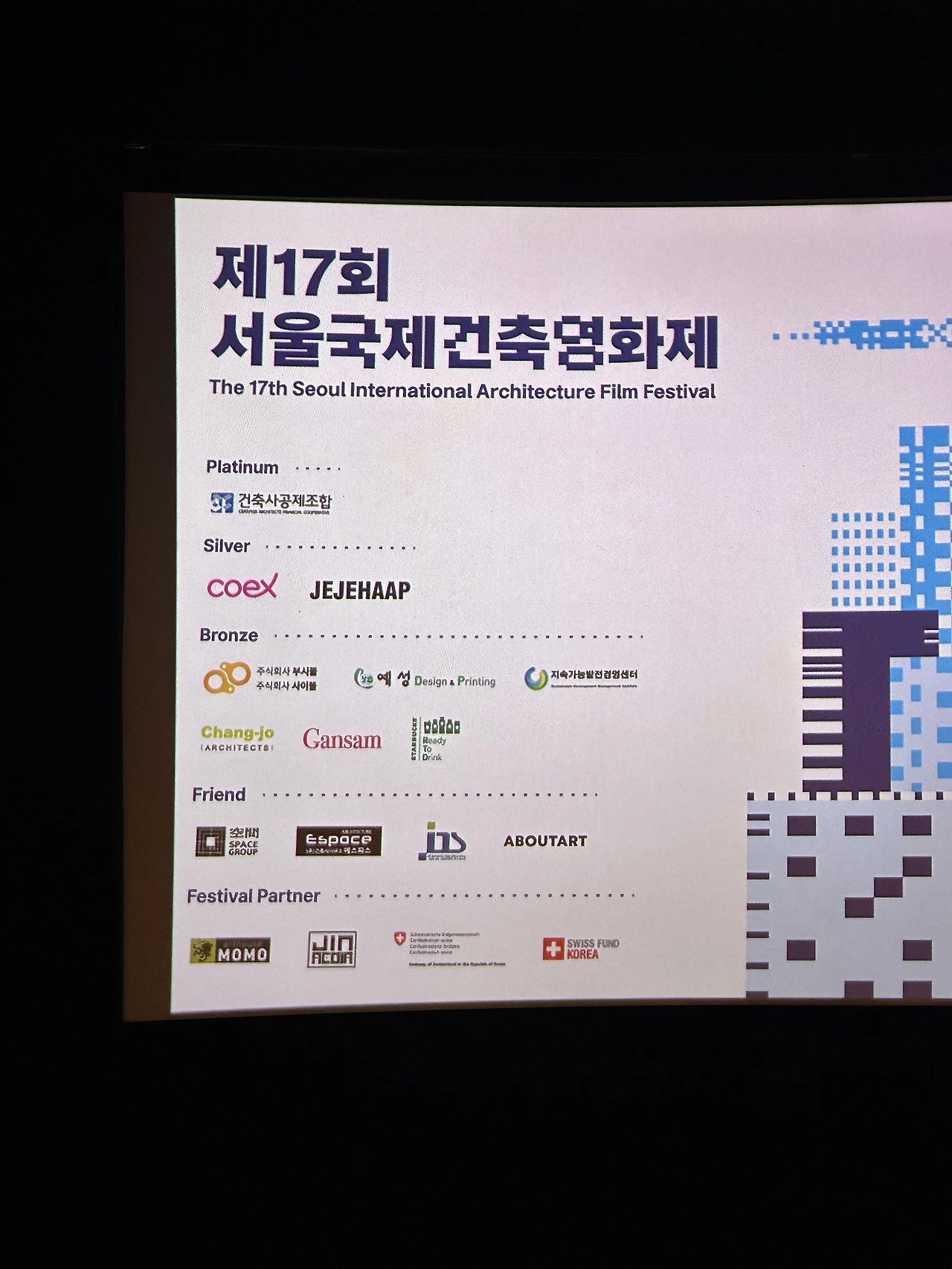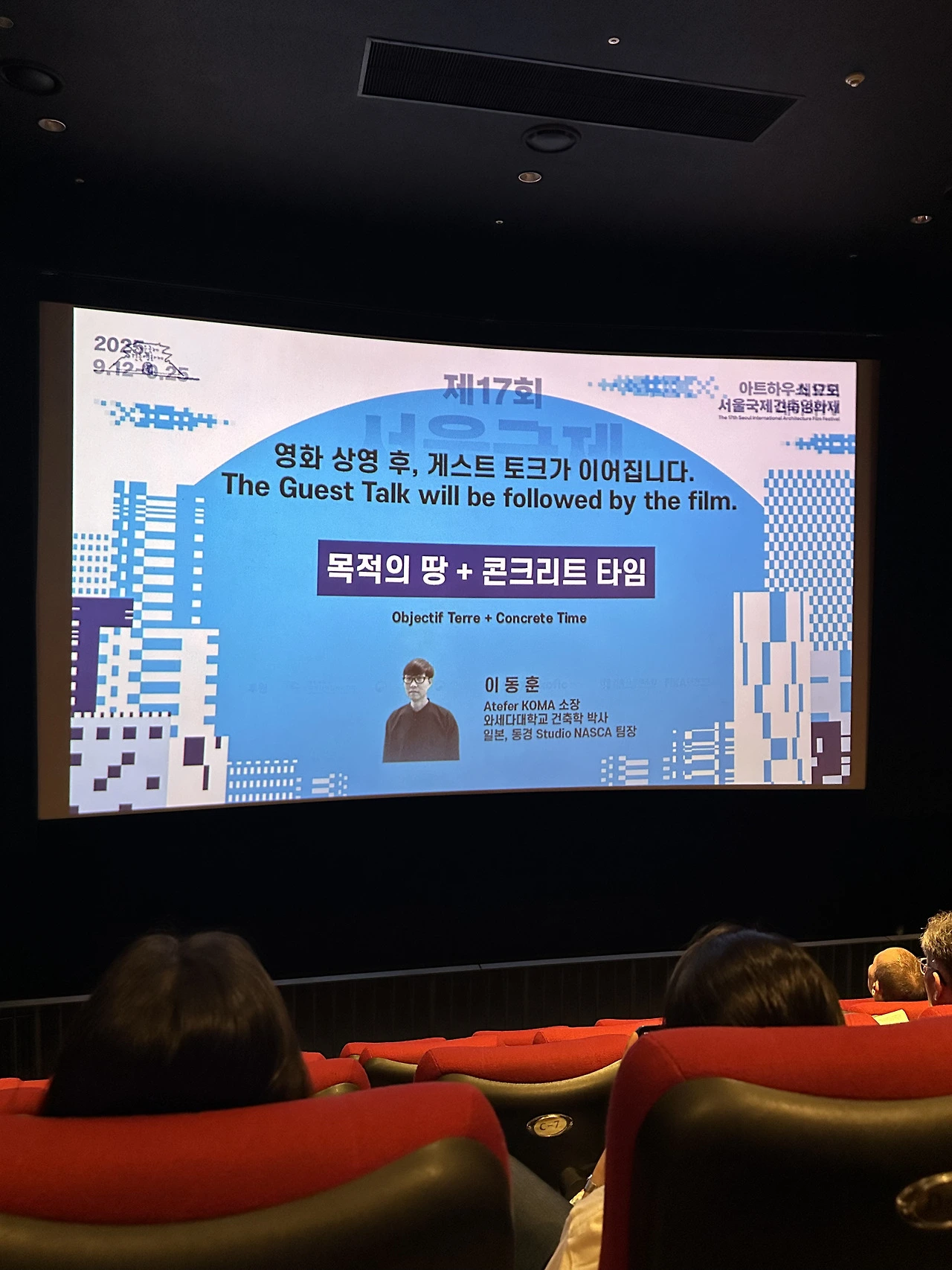 서울국제건축영화제에 처음 갔어요. <목적의 땅>, <콘크리트 타임> 영화 두 편을 보고, 이어진 게스트 토크까지 듣고 왔어요.
