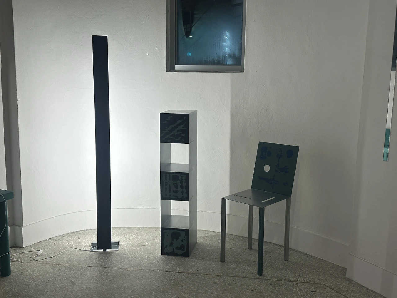 아래는 철에 옻칠을 한 작품이에요. 색을 여러 겹 깔고 문질러 벗겨내면서 무늬를 만들었다고 하셨어요. 옻독과의 사투, 옻이라는 예민한 소재를 다루는 어려움을 토로해 주셨어요. 재료의 까칠함이 작품을 더 매력적으로 보이게 했어요.