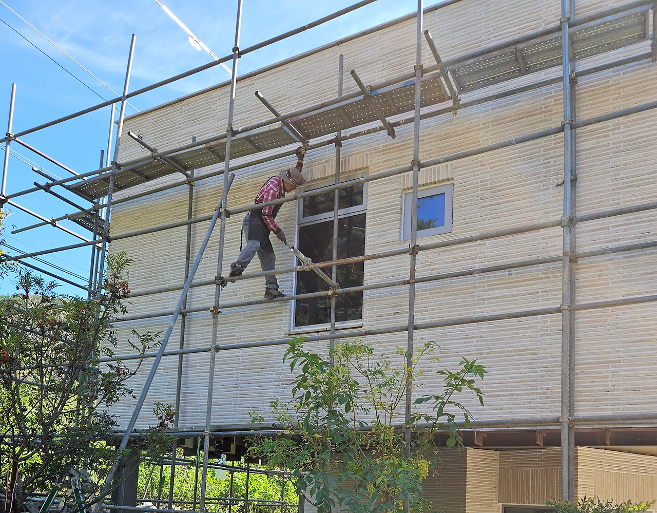 H빔은 그래도 한나절 에피소드였다면, 벽돌 쌓기는 23일 동안 지속된 지루한 과정이었다. 돌가루와 시멘트를 굳혀서 만든 벽돌이라서 다른 벽돌보다 가루가 엄청 날렸다. 간이벽을 쳐도 가루와 소리는 바람을 따라 동네에 퍼질 수밖에 없었다. 그런데 마을 이장님도 나서서 주민들에게 양해를 구해 주시고, 가장 피해가 많았을 옆집은 “저 집 공사 언제 끝나요?”하면 “곧 끝납니다.”하며 잘 넘겨주었다고 한다.
