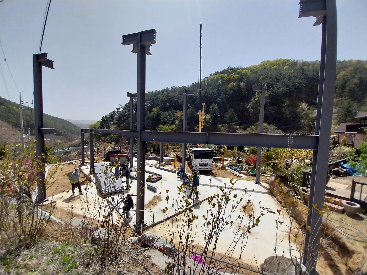 이런 아빠의 친화력이 예상치 못하게 건축을 하며 빛을 발한 거다. 2층집이다 보니, 8m 길이의 H빔이 골조로 들어갔다. 외삼촌이 그 큰 H빔 골조를 좁은 산길을 따라서 들여오는데, 보면서도 이게 되는구나 싶어 신기했다고 한다. 엄마는 “건축하러 오는 팀마다 이걸 어떻게 들여왔냐고 하더라고. 덕분에 그 뒤에 오는 건축 팀들은 산골이어서 자재를 못 들고 온다는 말을 못 했지.”라며 회상했다.