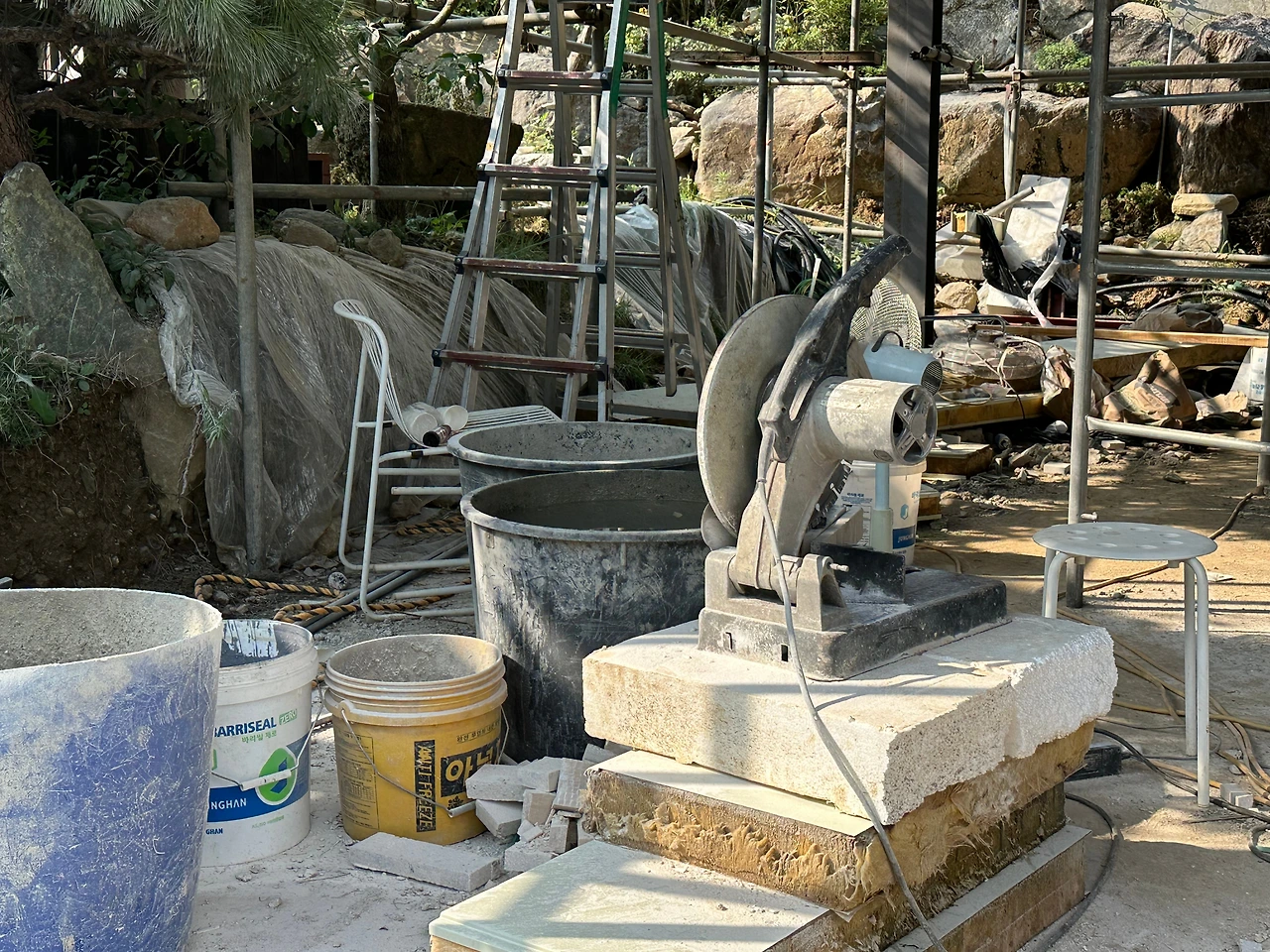 구축 옆 지어지고 있는 신축의 골조