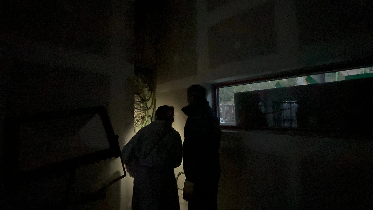 아직 덮지 않아 그대로 노출된 전선을 보며 이야기 나누는 중
