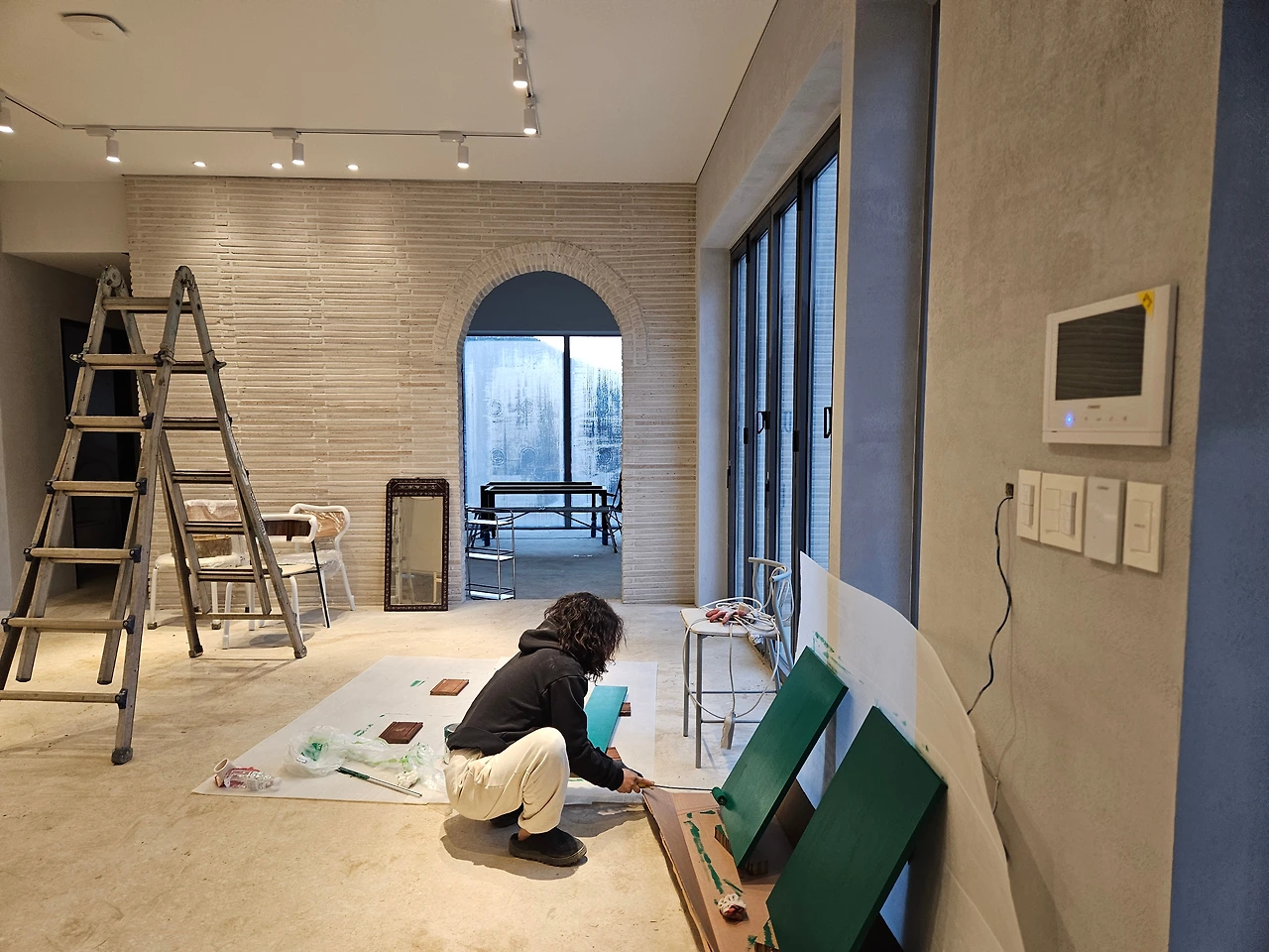 원래는 초록 문을 구매하려 했다. 그런데 시중에 쨍한 원색 초록으로 된 싱크가 없었다. 아쉬웠지만, 건축을 하며 웬만한 일은 스스로 할 수 있게 된 부모님이었다. 직접 제작하기로 한다.