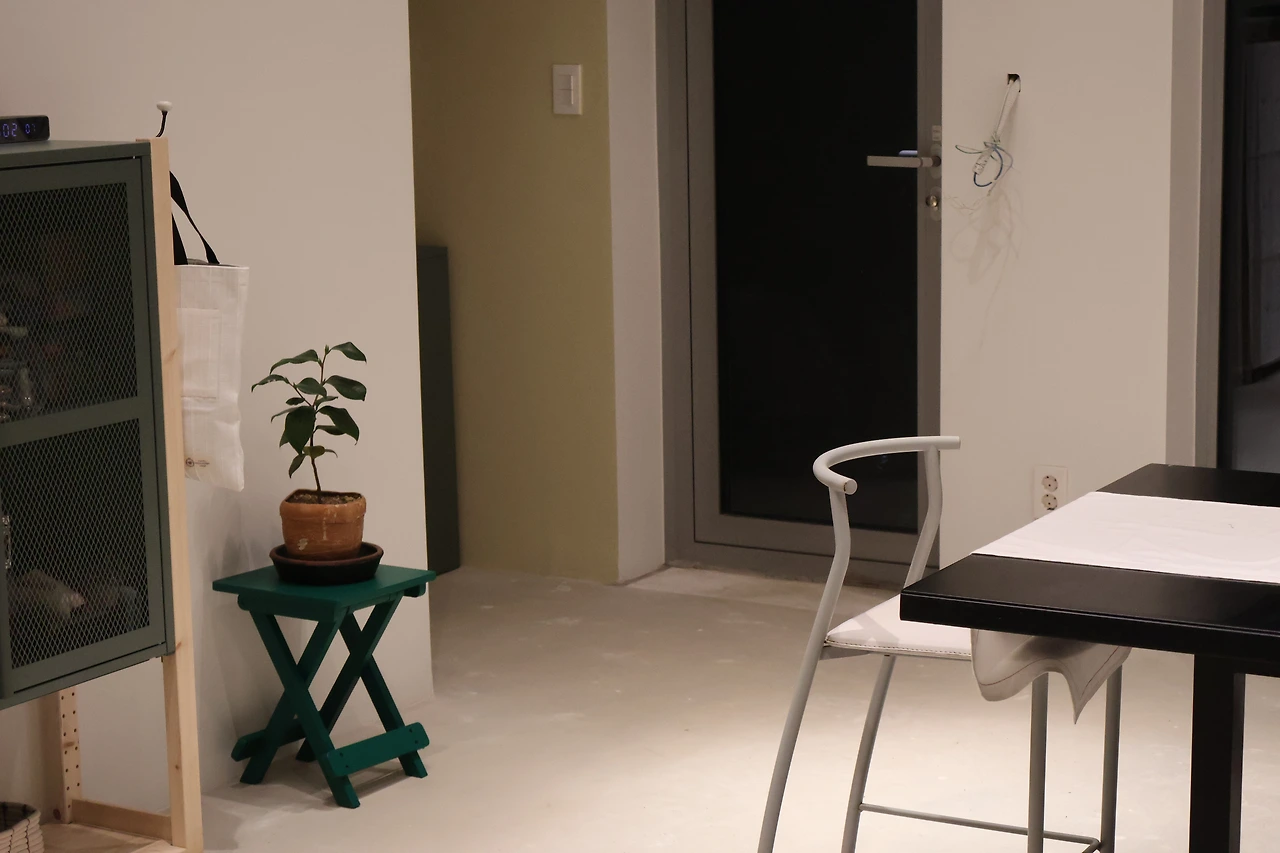 초록 가구들은 구축에서 시작해서 신축까지 퍼져나갔다. 개성이 강한 원색이지만, 어디든 포인트가 되며 잘 어울리는 것이 신기하다. 인테리어를 하며 가장 고민하는 것이 색 조합이다. 생각보다 여기저기 출몰하는 진한 녹색에 놀랐지만, 공간에 맞는 색을 찾은 것 같아 기분이 좋다.