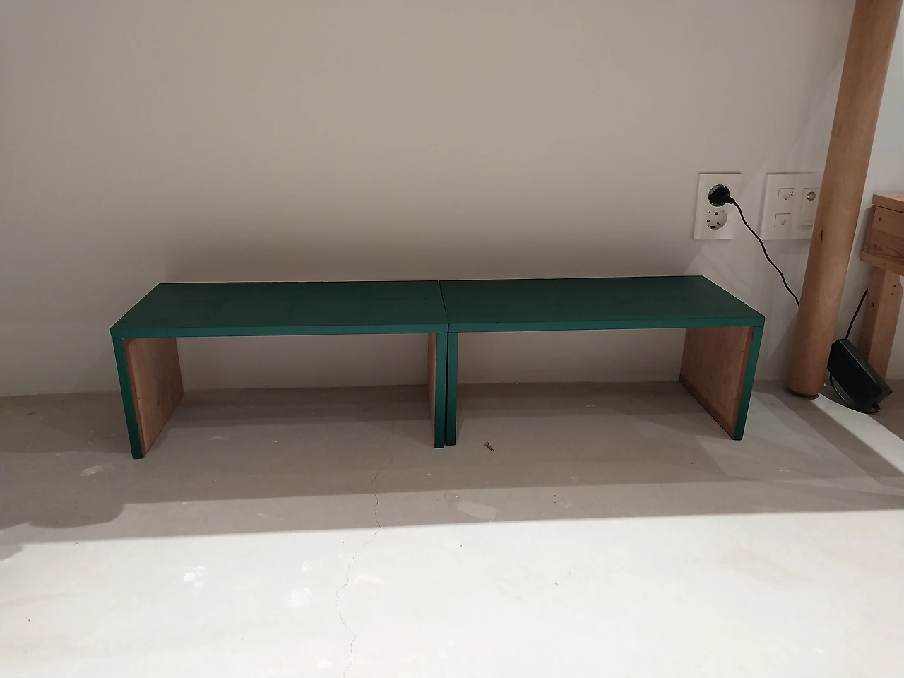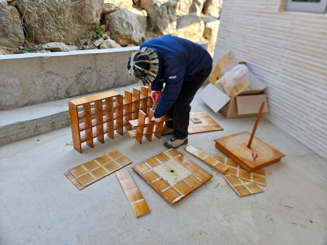 두 분이 힘을 합쳐 문을 직접 제작해 달고 나니, 자신감이 생겼다. 아빠가 배운 목공이 빛을 보는 순간이기도 했다. 신이 난 아빠는 엄마가 요청에 따라 끊임없이 가구를 제작했다. 그렇게 엄마의 공구보관함, 신축 공용 공간의 선반, 화분 받침까지 집 안 곳곳에 초록색 가구가 들어섰다.