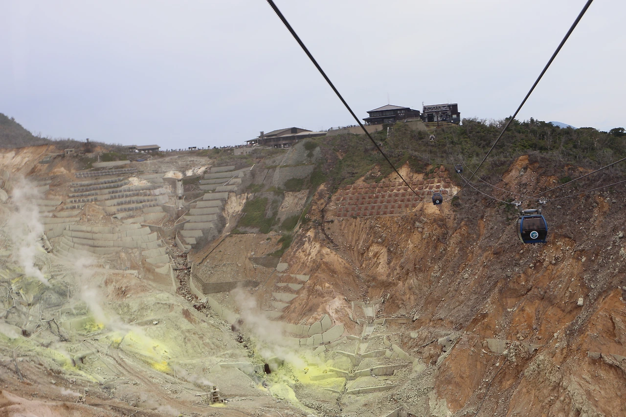 다음날에는 하코네를 투어 하는 일정이었다. 해적선의 갑판에서 바람을 쐬다가 케이블카를 두어 번 타니 순식간에 오와쿠다니에 도착했다. 활화산이 뿜어내는 연기와 노란색 가루들이 이색적이었다.