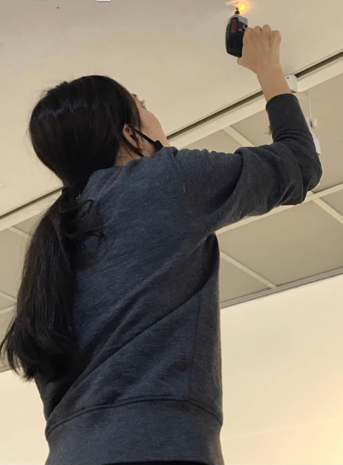 미술관에서 드릴을 사용하고 있는 현실의 모습, 아직 현장일에 덜 데인 건지 나는 이렇게 몸 쓰는 일이 즐거울 때가 종종 있다.