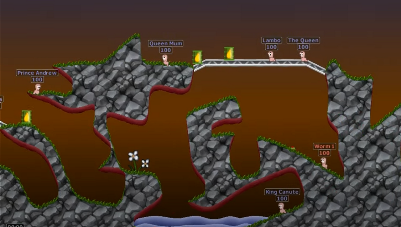게임에서 인상적이었던 부분은 1분이라는 시간 내로 이동과 공격을 함께 해야 하는 점인데 이게 꽤 긴장된다. 거기에 이 웜즈라는 캐릭터는 점프도 가능해서 아주 높지만 않다면 꽤 먼 거리를 이동 가능할 수 있다. (그래서 간혹 야구방망이 무기를 이용해서 상대방을 홈런 맞은 야구공처럼 저 멀리로 날려버릴 수 있다)