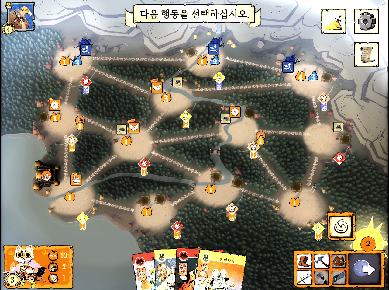 그래서인지 고양이 후작의 눈을 가리는 게 중요했다. 고양이 후작이 내부를 관리하기 시작하면 다른 세력은 쉽지 않다. 게임 외에서도 전략이 필요하다. 자꾸 말을 걸고, 싸움을 걸어서 대응하도록 눈을 돌려야 한다.