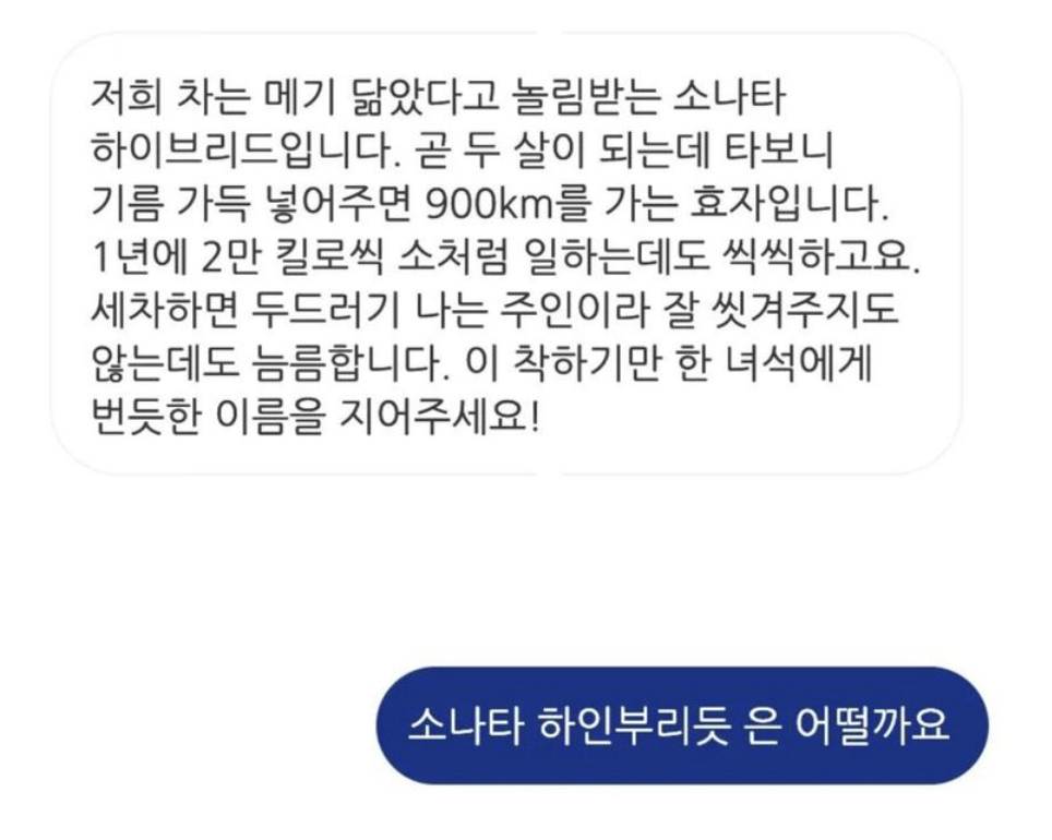 "소나타 하이브리드"를 "소나타 하인부리듯"