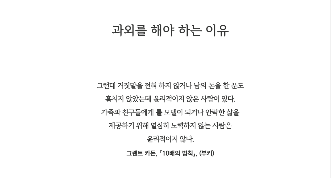 저는 그랜트 카돈을 좋아합니다. 여러 가지 우여곡절을 겪었던 인생 이야기도 마음에 듭니다. 그가 세일즈맨에서 세일즈 강사로 활동하고 세일즈 관련 사업을 한다는 점은 세일즈에 진심이라는 점을 알 수 있습니다. 제 책의 첫 인용구도 그랜트 카돈의 이야기를 담았습니다.