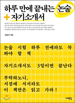 첫 번째 논평할 책은 『하루 만에 끝내는 논술 + 자기소개서』이다. 나는 여기서 이 책의 자기소개서 부분에 대해서 다루지는 않는다. 그리고 내가 작성하는 글은 이 책에 대한 전반적인 비평이 되길 바란다.