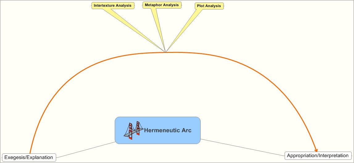 (해석학적 호는 비유인데, 두 가지 방법이 수면 위로 올라와서 하나로 만나는 것을 의미한다. 리쾨르에 의하면 해석은 수면 아래에 있는 심층 의미와 수면 위의 의미를 모두 다루어야 한다. 이 비유는 여러 가지의 의미를 부여할 수 있을 것 같은데, 나는 수면 아래에부터 의미를 끌어오는 작업이 고정된 텍스트를 역동적으로 끌어올리는 작업처럼 느낀다.)