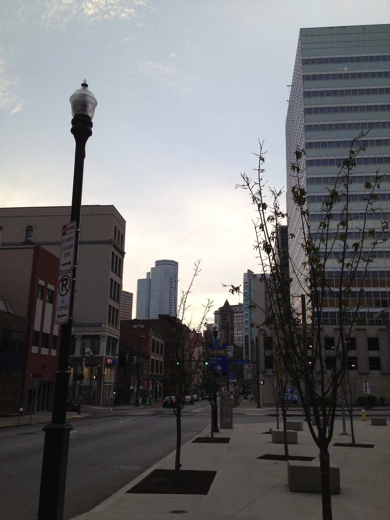 뉴욕이나 시카고 정도로 멋진 건물들이 즐비하진 않지만 그 두 도시에서 볼 수 있는 20세기 초 아르데코풍 건물들도 은근 있었다. 게다가 저녁 어스름이 깔리는데 다운타운에 사람들이 걸어서 돌아다니고 있었다. 안전하다는 이야기다.
