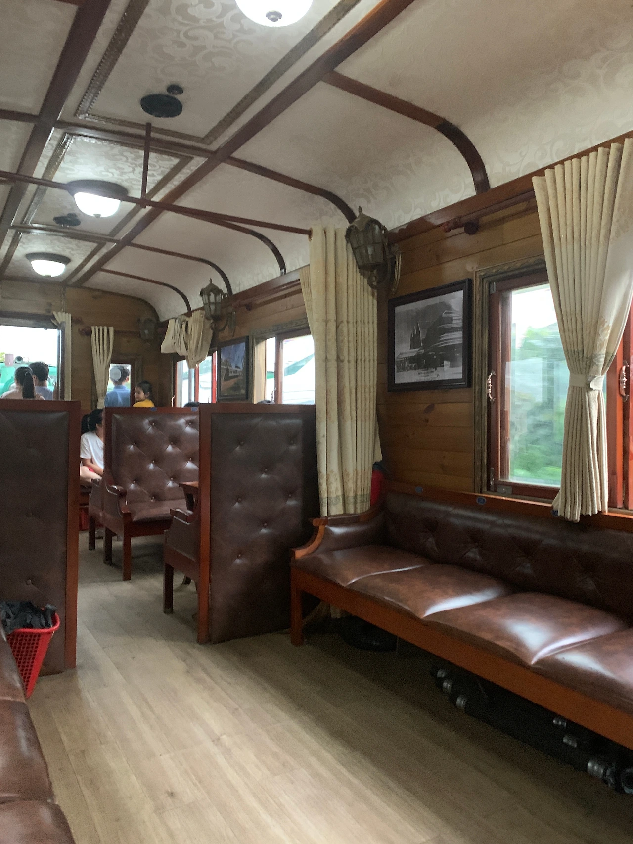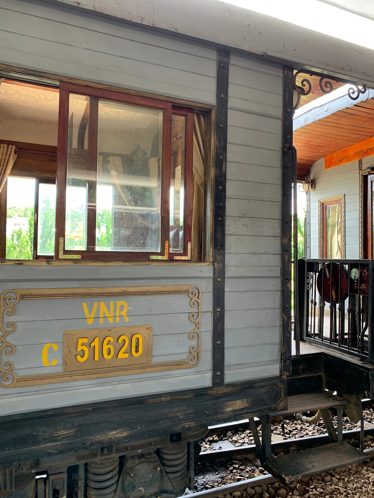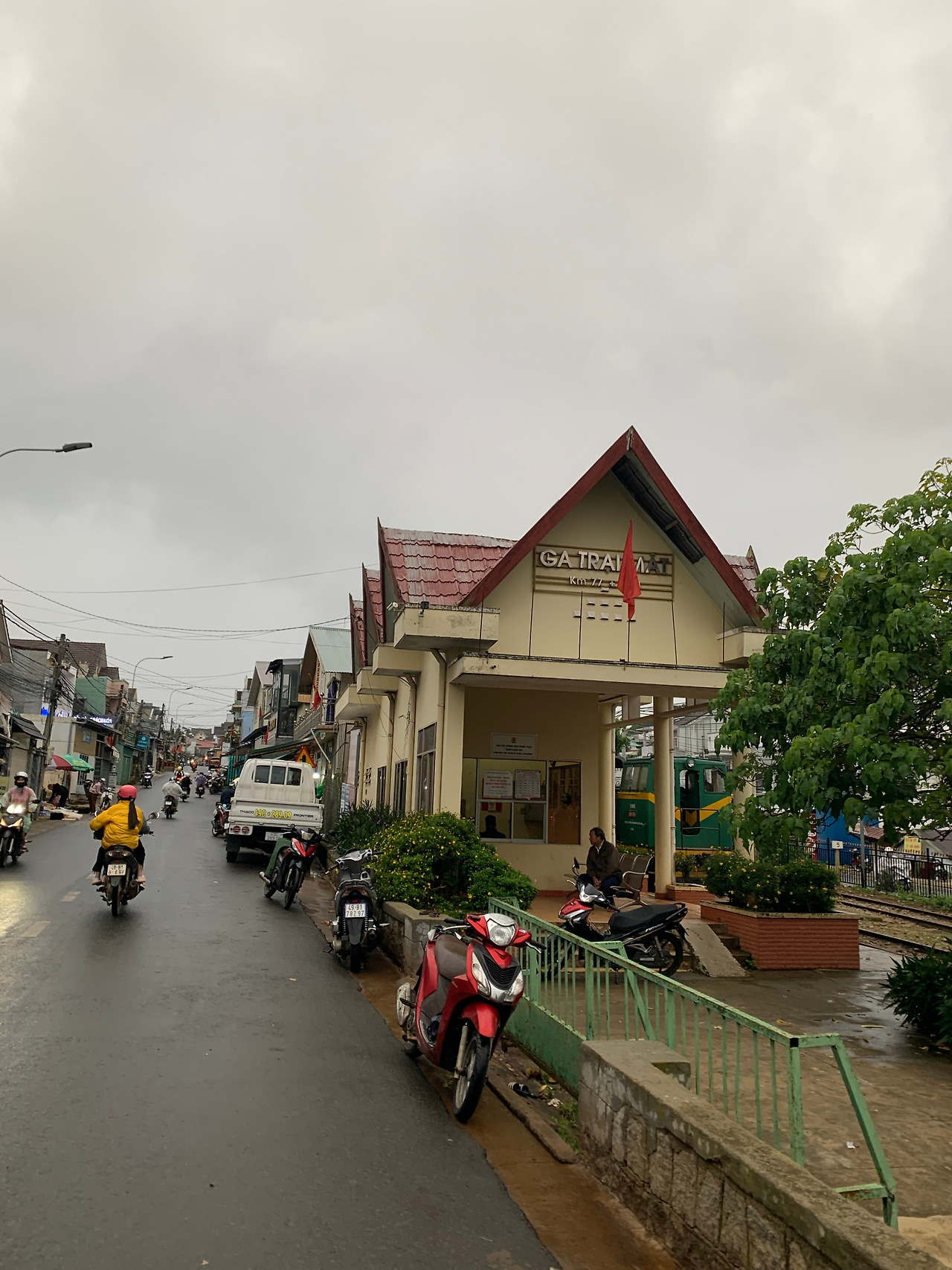 린푸억 사원까지는 달랏 기차역에서 기차를 타고 갈 수 있다지만 오전 9시 55분 기차를 제외하면 인원수가 적을 경우 출발하지 않는다고 한다. 아니나 다를까 2시 차가 출발을 안해서 그랩을 타고 사원으로 이동했다. 올 때는 5시 10분 기차가 있어서 타고 올 수 있었다. 향수를 자아내는 작고 낭만적인 기차였다. 기차역 자체도 구경거리였고. 샛노란색 귀여운 외관과 대조적으로 내부에는 약간 기괴한 나무 장식물들을 파는 가게가 있었고 상품인지 공공시설인지 헷갈리는 의자에 사람들이 앉아 있었다. 베트남 전쟁 때 철로가 파괴된 이후 이 관광열차를 제외하면 인근에 기차는 다니지 않는다고 한다.