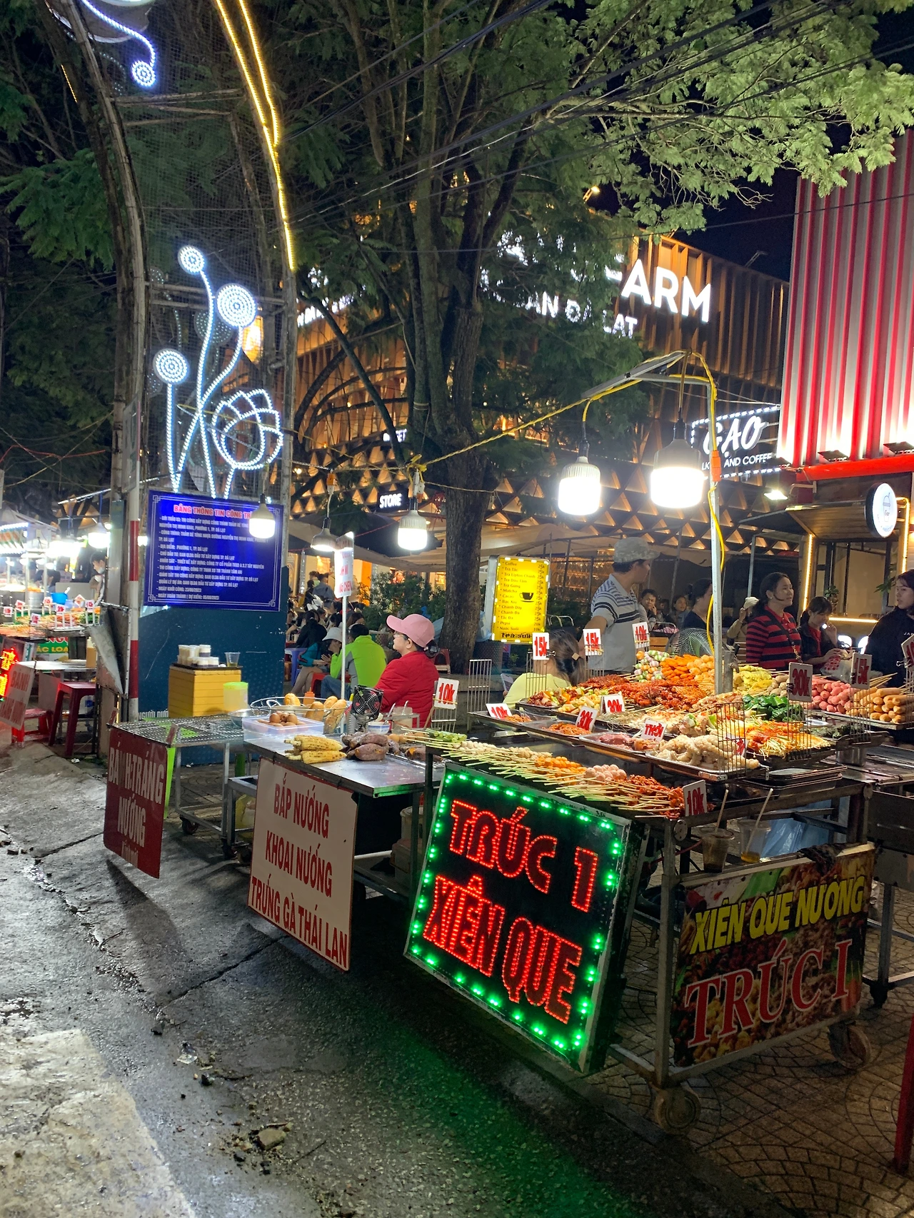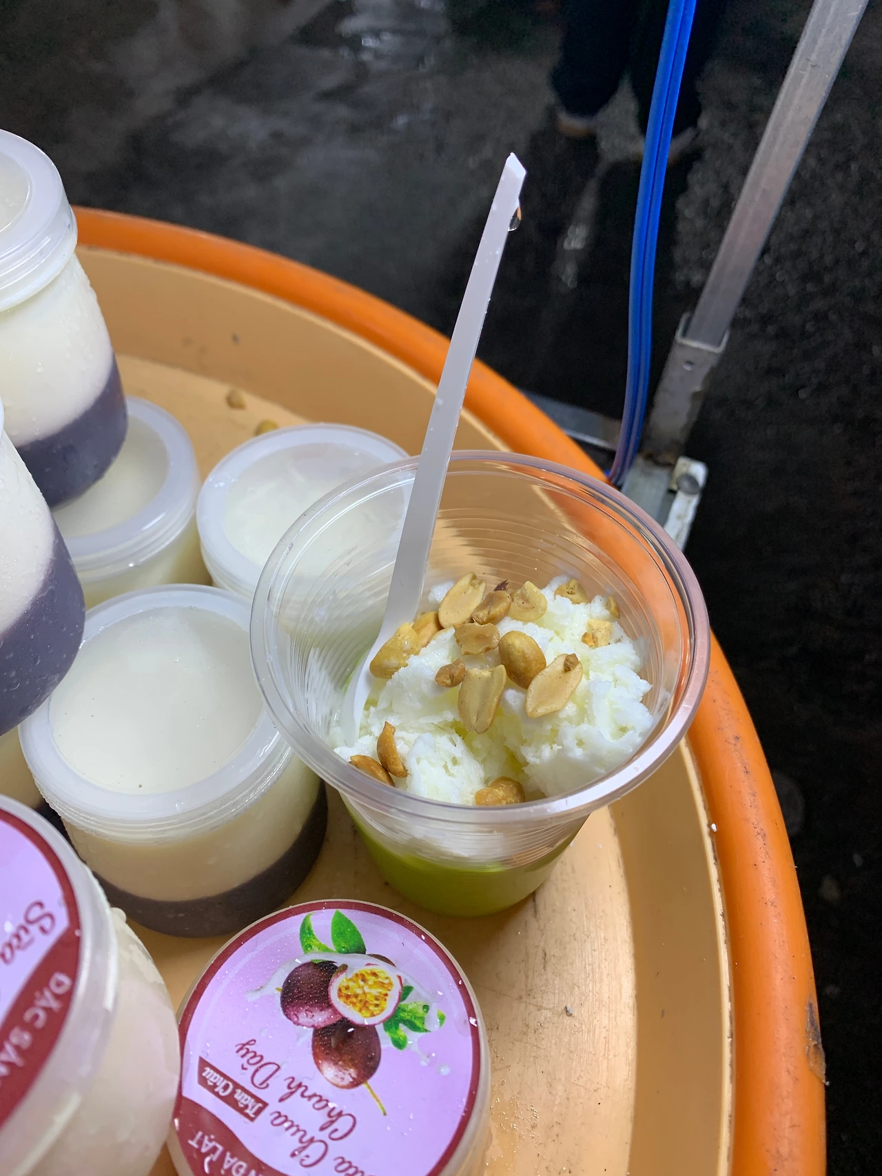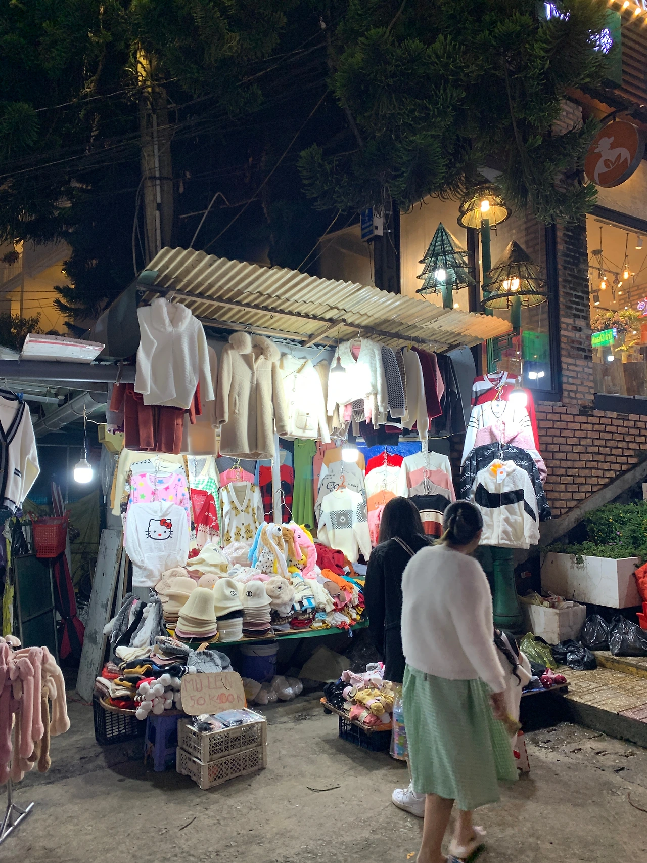 전체 규모는 그리 크지 않았지만 엄청난 인파에서 흥청망청 뿜어져 나오는 에너지가 압도적. 무슨 난리 난 줄 알았다. 주로 옷을 팔고 있었고 먹을 것도 많았다. 공연도 하고 있었고. 시장 초입 큰 나무 아래 계단에는 엄청 많은 수의 사람들이 빽빽히 앉아 있었다. 초등학교 저학년 밖에 안되어 보이는 아이가 장사하는 노점에서 동네 명물이라는 아보카도 아이스크림(껨보)을 사먹었다. 안쓰러웠지만 씩씩하고 야무져 보이는 아이였다. 아이스크림은 쌉쌀한 끝맛이 특이했다. 요즘 달랏에서 흰색 털옷이 대유행인지 가게마다 많이 팔고 있었다. 심지어 이 여름에 그런 옷을 입고 다니는 사람들도 있더라. 체감 온도란 것은 진짜 나라마다 차이가 크구나 싶었다(우리의 경우에는, 추위를 많이 타는 나도 밤에 얇은 가디건 하나로 충분했다. T는 그냥 반팔로 다녔고 : 그런데 지금은 한여름이란 말입니다!)