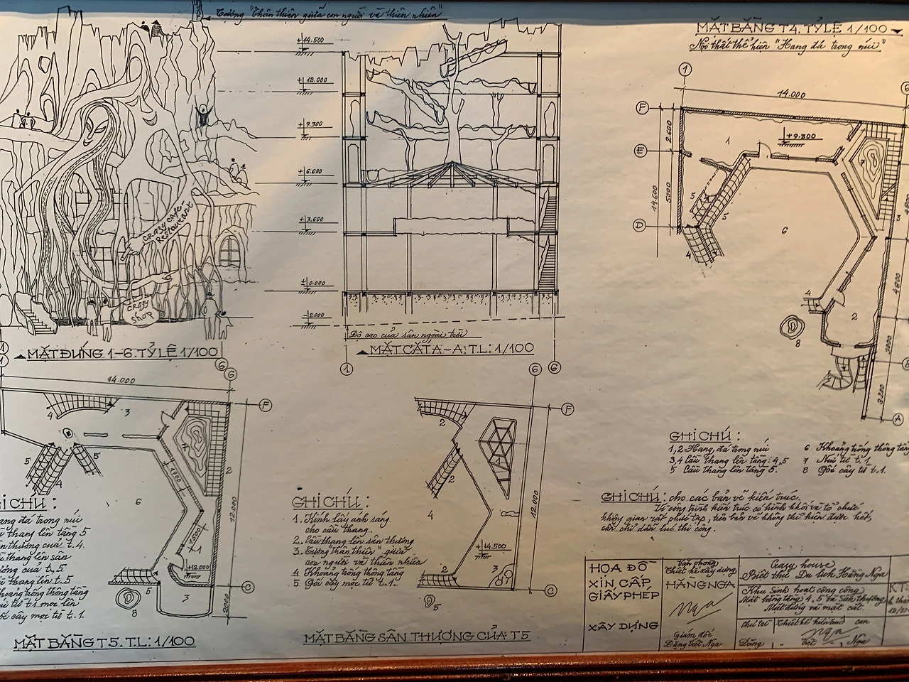 아무 계획 없이 마구 지은 것 같은데 놀랍게도 건물 설계도들이 전시된 방이 있었다. ‘당비엣응아’라는, 외우기 힘든 이름의 건축가 사진이 설계도의 방 곳곳에 많았다. 영화배우 같은 포즈도 꽤 있어서 약간 아니 많이 관종끼가 있는 사람인 것 같았다(건물 자체가 관종스러움의 끝판왕이니 뭐).
