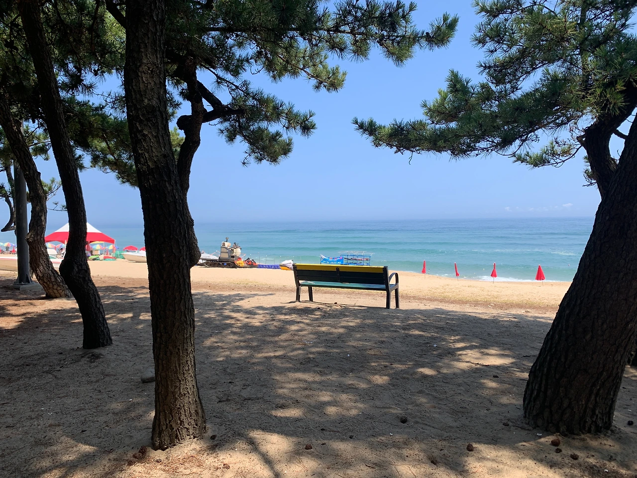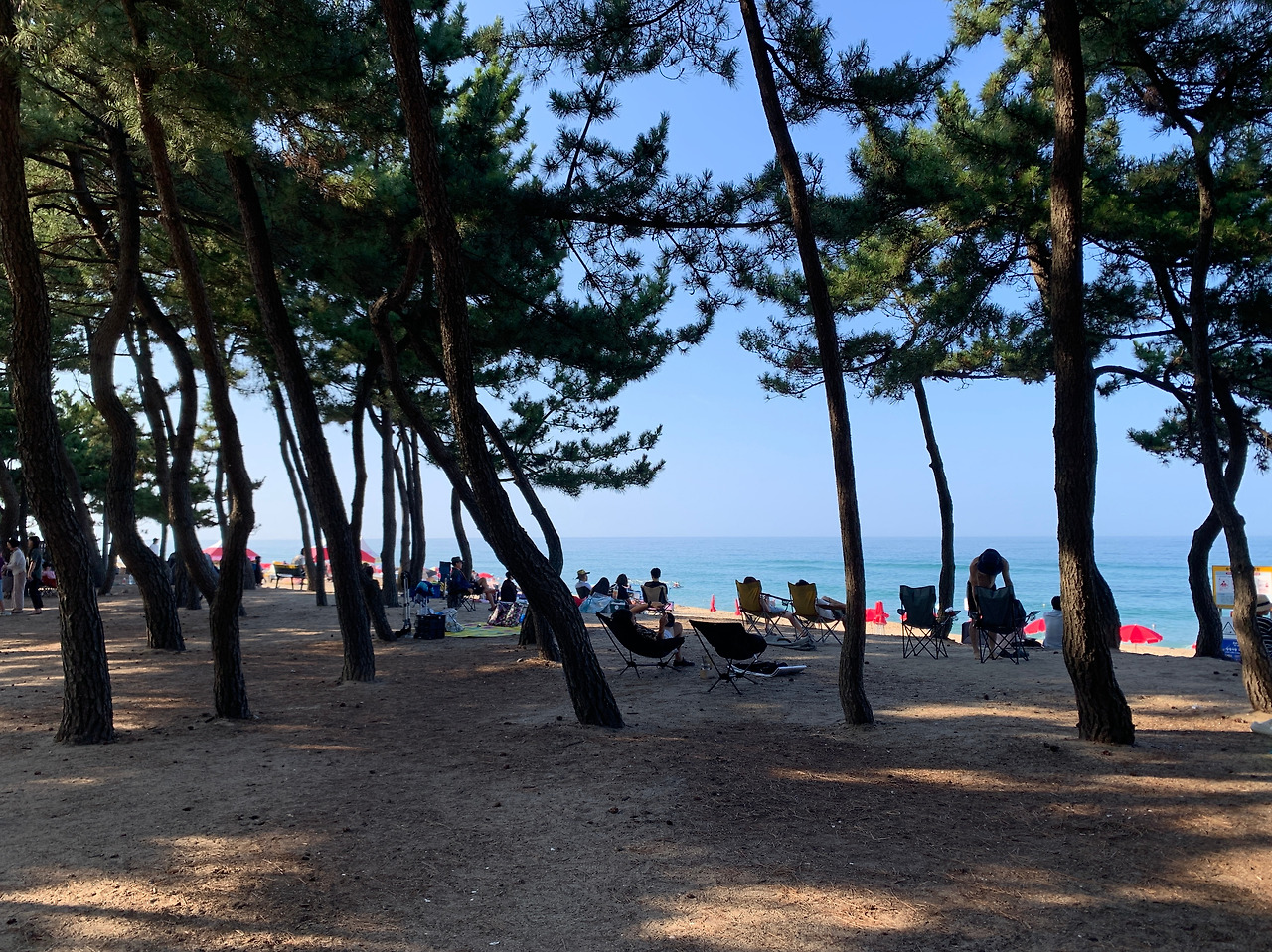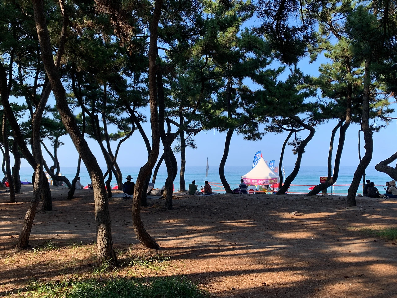해변마다 개성이 달랐고 다 좋았지만 나는 송정해변이 특히 마음에 들었다. 이곳은 주변에 호텔이나 식당이 거의 없고 송림만이 우거져 있다. 동네 사람들이 돗자리 깔고 누워 있는 그런 분위기였다. 송림은 소박했고 깨끗했다.