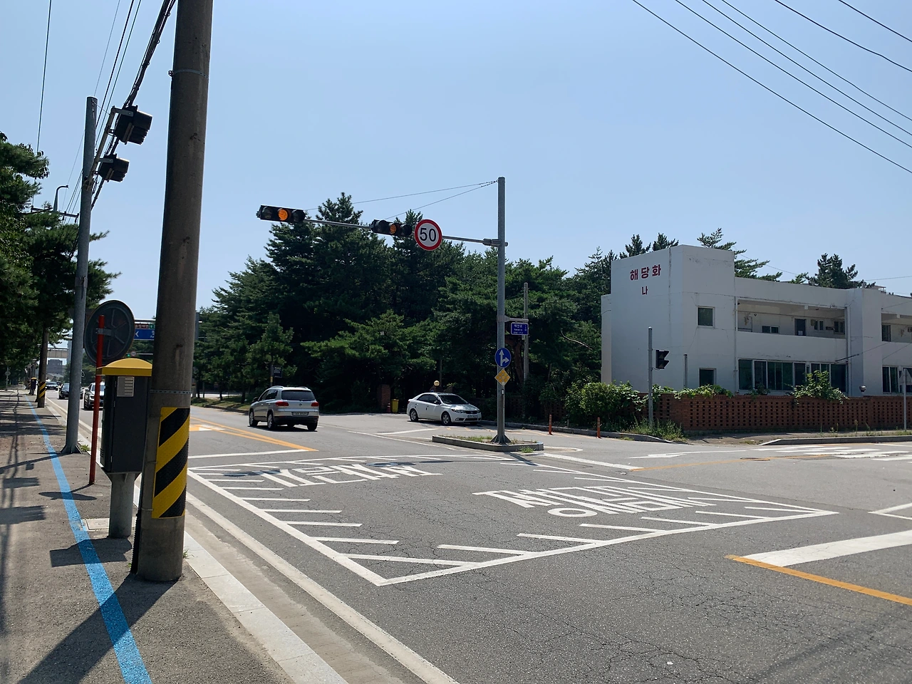 덧) 송정해변 근처에 ‘해당화 연립‘이라는 곳이 있었다. 버스 정류장 이름으로도 당당히 나와있어서 이정표 역할을 하는 건물 같았다. 외양은 연립이라기보다 저층 아파트처럼 보였지만 2층인 것보니 연립 같기도 하고… 건물 자체는 지은지 오래된 듯 했지만외벽은 최근에 새로칠한 듯 하얀색이었다. 그런데 이곳은 송림말고는 아무 것도 없는 곳이다. 인가가 없는 곳에 홀연히 나타난 이 아파트에는 마치 영화촬영을 위해 임시로 지은 듯 뭔가 비현실적인 분위기가 있었다. 주변에 아무 것도 없는데 이곳에 왜 이렇게 생긴 아파트가 있을까? 이 건물이 인상적이어서 버스를 타고 나서도 자꾸만 돌아보았다.