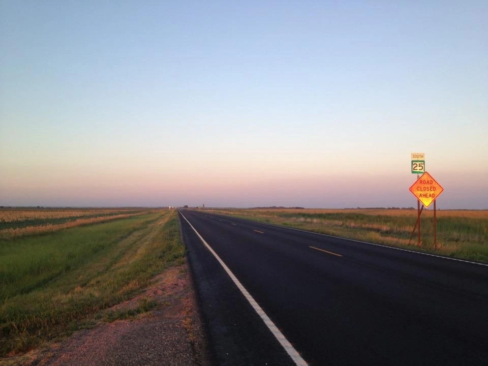 네브래스카의 오마하를 출발, 배드랜즈 국립공원(Badlands National Park) 인근까지 올 동안 풍경이 계속 이런 식이었다. 오마하 근처에는 그래도 간간히 나무도 있고 농장도 있고 약간의 굴곡도 있었는데 사우스 다코타에 들어서면서 길은 끝없이 뻗은 거대한 비행기 활주로처럼 변했다. 왜 이 거대한 텅 빈 공간은 시원함보다는 숨막힘을 느끼게 하는 걸까? 경치를 감상하려고 차에서 내리자 마치 물속에 들어온 듯 심장의 압박이 느껴졌다. 해가 지고 나니 크기와 거리를 가늠할 수 있는 지표들이 사라지면서 차가 우주 속에 난 길을 달려가는 것 같았다.