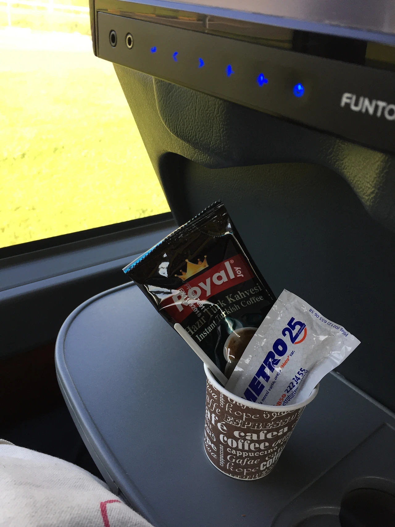 마치 비행기에서처럼 밤새 버스 안을 오가면서 물수건, 커피, 빵 등을 나눠주는 승무원이 인상 깊었는데 가엾기도 했다. 자고 일어나면 아침일 텐데 왜 굳이 밤새 왔다 갔다 하면서 서빙을 해야 하는 걸까(나중에 알고 보니 터키에서 야간 버스를 타 본 사람들이 많이 이 승무원 서빙을 인상 깊어하더라).