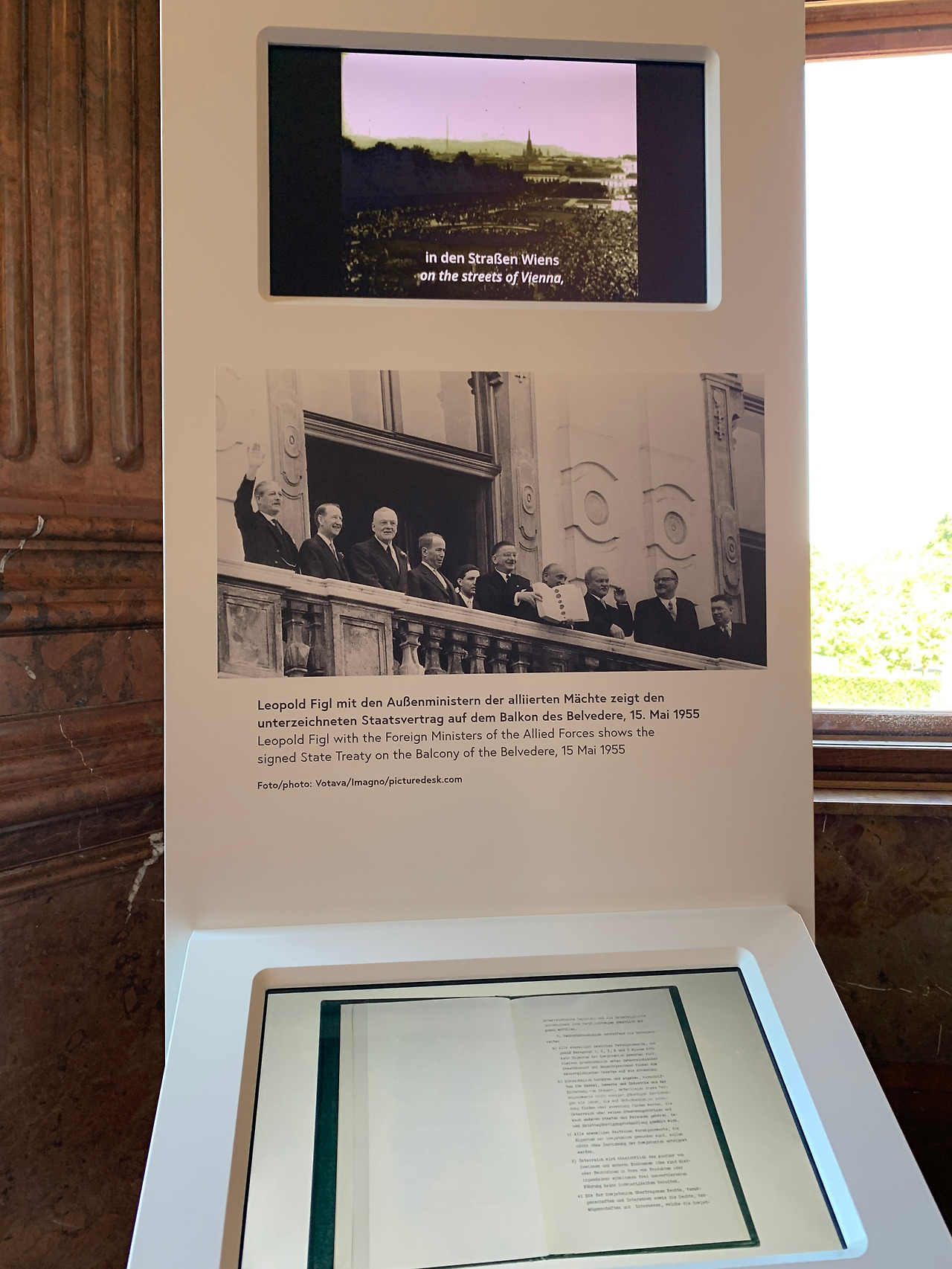 오버레스 벨베데레의 한 화려한 방에는 오늘날의 오스트리아를 만든 조약 Austrian State Treaty가 서명된 방이라는 설명판이 붙어 있었다. 1955년 5월 15일. 이 날이 오스트리아 사람들에게는 중요한 날인 듯했다.