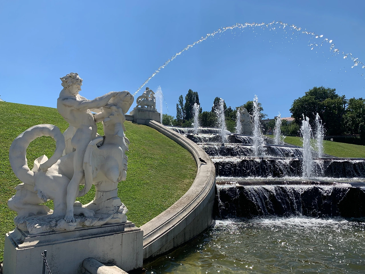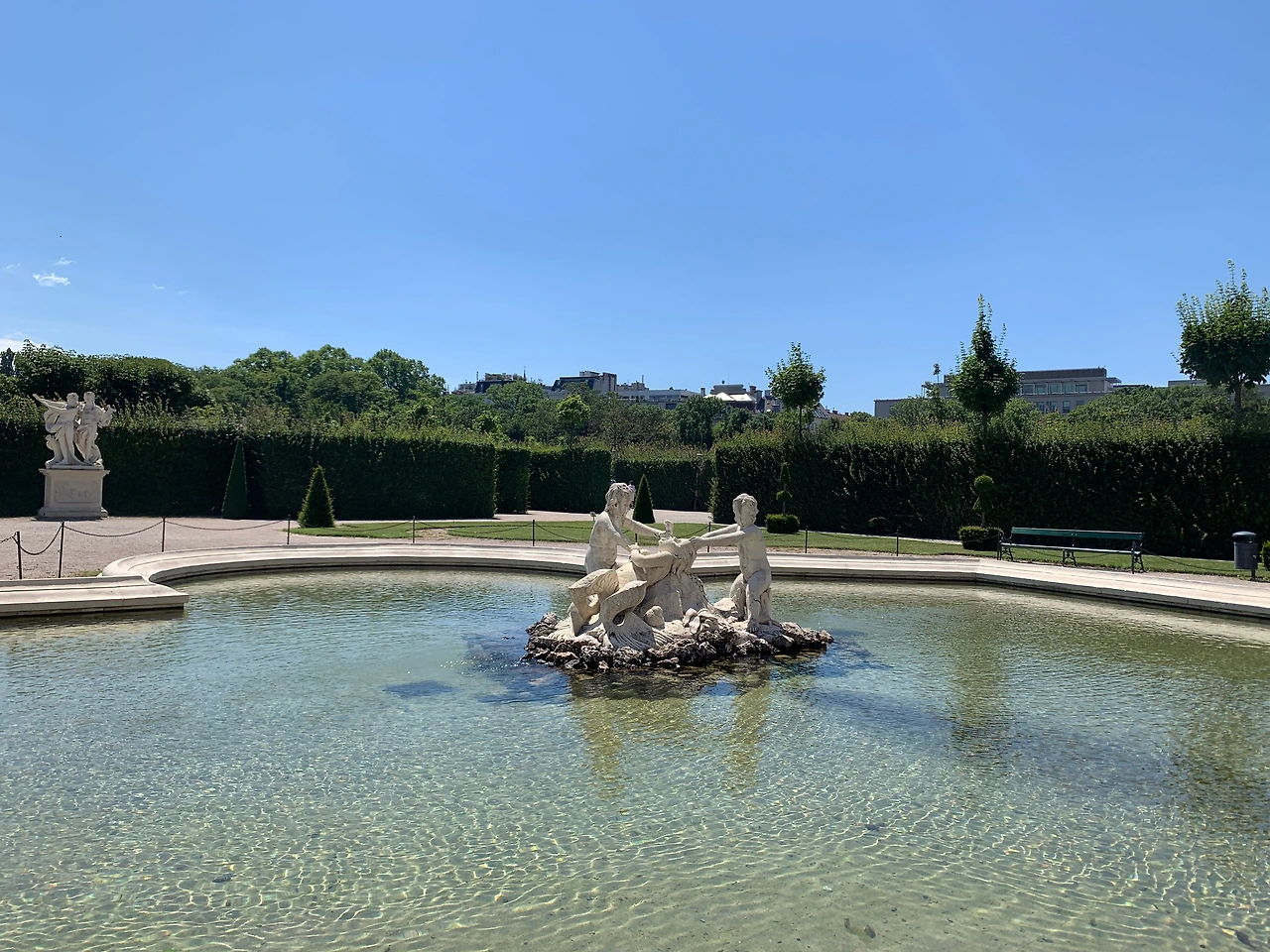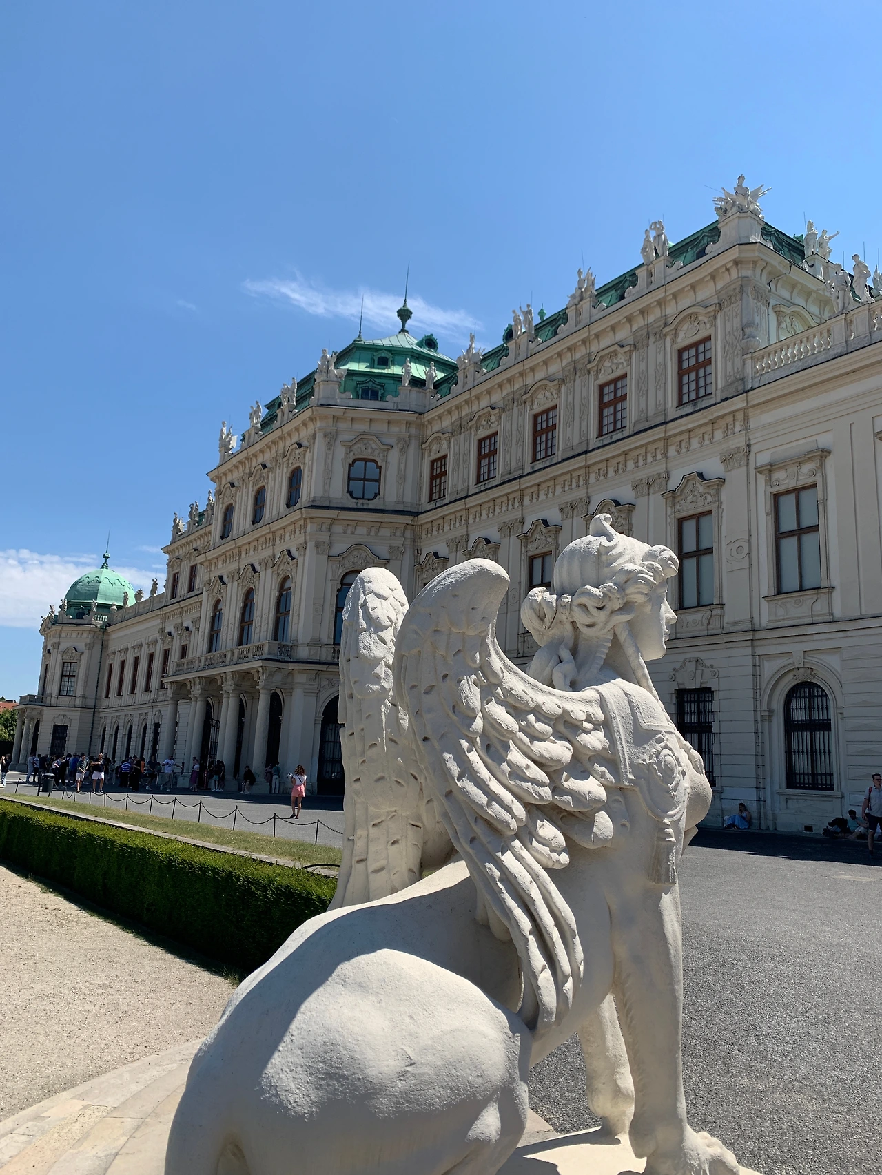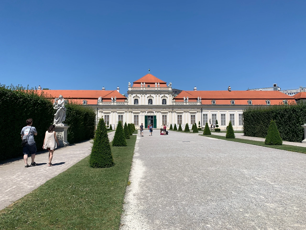 예쁜 비엔나 안에서도 특히 아름답고 우아했던 곳은 벨베데레 궁전이었다. 오렌지색 지붕의 운터레스 벨베데레(하궁)와 민트색 지붕의 오버레스 벨베데레(상궁) 그리고 그 사이의 정원으로 이루어진 이곳은 돌아다니기 힘들 정도로 넓지도 않았고, 잘 꾸며져 있고 단아했으며, 물과 분수가 있어서 시원했다. 난 이곳이 무척 마음에 들었다. 여기가 우리 별장이면 좋겠다, 하고 T에게 말했다(노상 하는 말도 안 되는 공상).