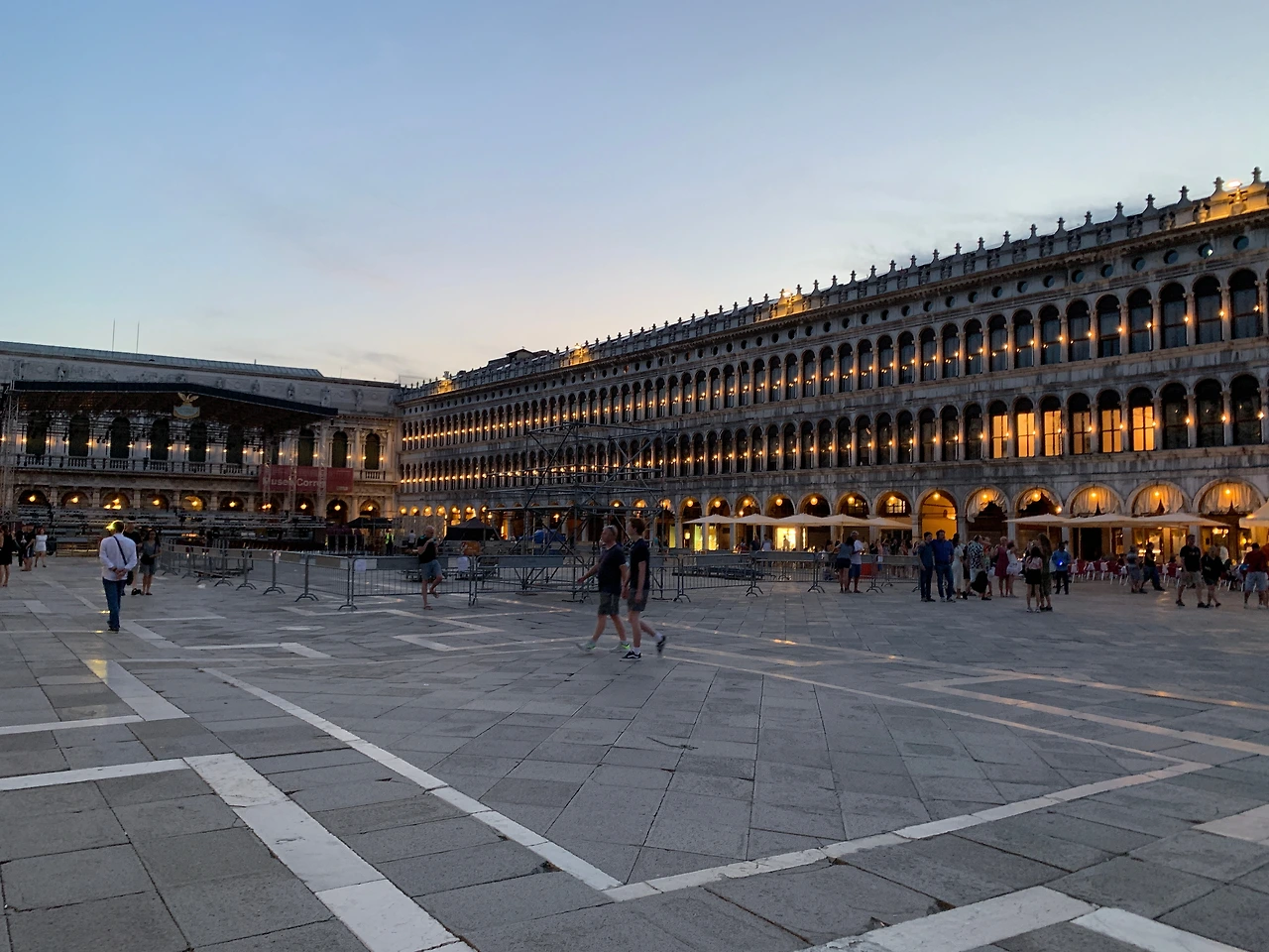 아드리아해 너머로 태양이 가라앉기 시작하면, 광장을 둘러싼 건물들에 한순간 조명이 켜진다. 카페의 악사들이 흥겨운 연주를 시작한다. 이 순간은 마치 마법 같다. 분홍빛 가로등 너머로 산 조르조 마조레 성당의 하얀 실루엣이 점차 어둠에 잠기고, 한낮엔 전투적으로 돌아다니던 관광객들도 발걸음이 느려진다. 바닷바람이 불어 더위가 식고, 공기는 코발트색으로 물들어간다.
