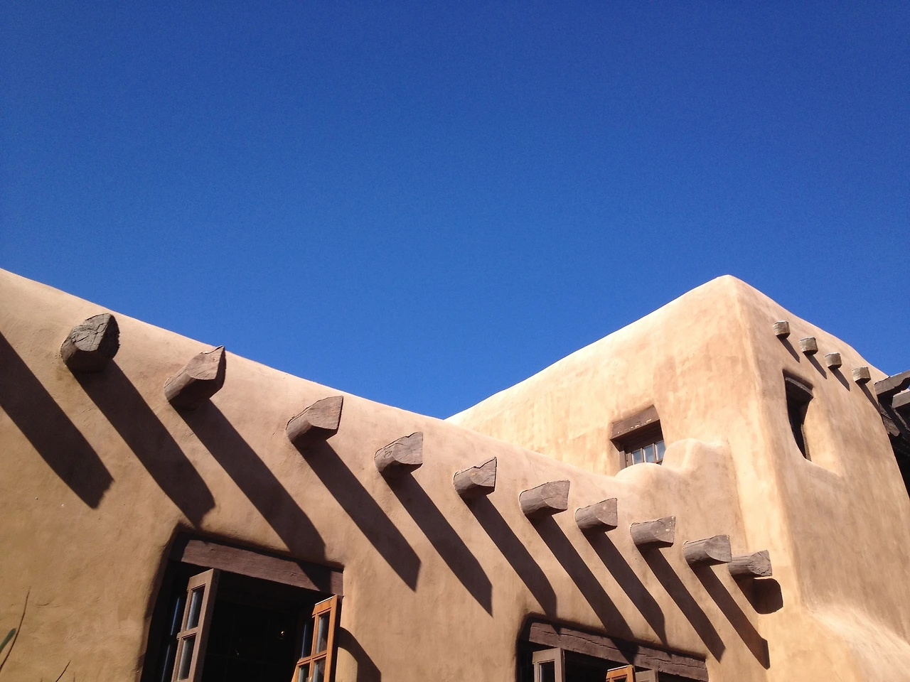 둘러볼수록 재미있는 도시가 있고, 도착하자마자 여행자를 압도하는 도시가 있다. 이를테면 베니스나 라스베가스는 후자가 아닐까. 그 정도로 강렬한 건 아니라 해도 산타페의 첫인상은 화려했다. 한때 멕시코땅이었던 지역답게 라틴적이고 가톨릭적인 정취가 가득했고, 도시 전체가 노랑이 살짝 섞인 밝은 갈색의 독특한 건축양식으로 통일되어 있었다. 어도비(Adobe)라고 부르는 이 양식은 이곳에 살던 푸에블로 인디언들의 것이라고 한다. 어도비 집들은 빛에 따라 색이 조금씩 달라졌는데, 흐린 날엔 분홍빛을 띠는 것처럼 보이기도 했다. 명도는 높고 채도가 낮아서 눈을 편안하게 해주는 색이다. 높은 건물이 없고 옆으로 퍼진 단층집이 많은 것, 벽의 모서리들이 모나지 않고 둥그스름한 것도 부드러운 인상을 주었다.