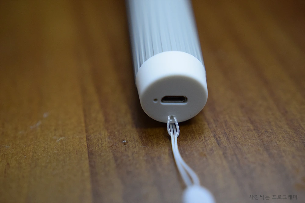 셀카봉의 손잡이 끝부분에는 블루투스 충전할 수 있도록 연결부분이 있습니다.