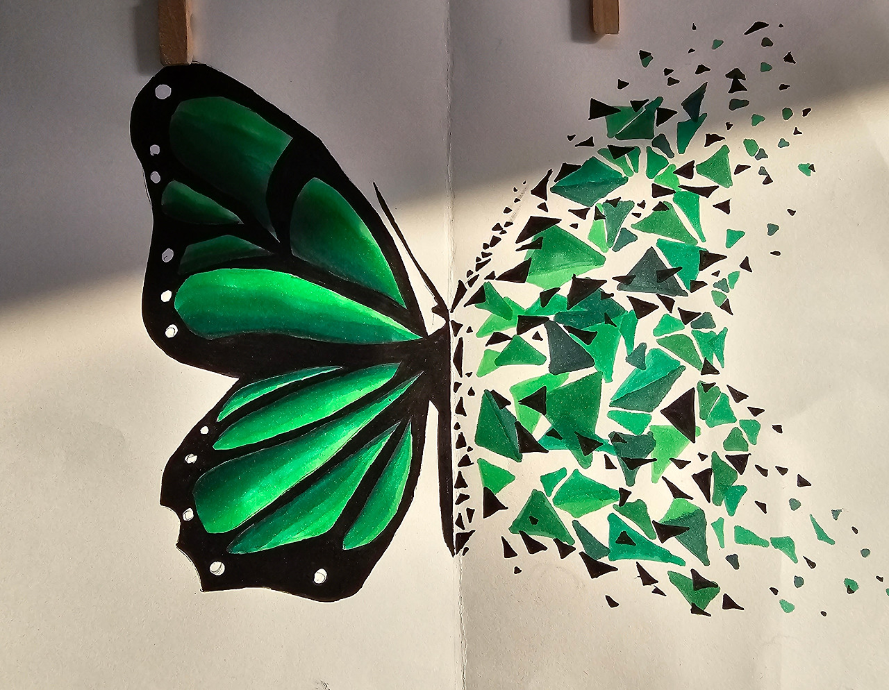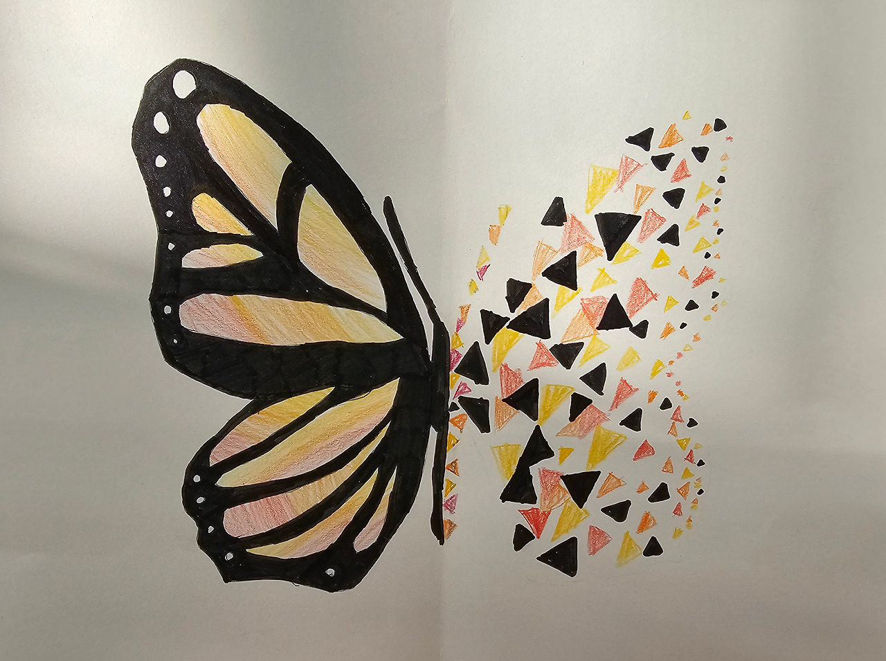 우리 반 아이들과 이 작품을 시도해 보면서 아이들의 두려움도 보았다. 형태에서 벗어나면 어쩌나, 내가 잘하고 있는 것일까 하는 머뭇거림과 망설임이 느껴졌다. 그럼에도 형형 색색 제각기 다 다른 나비들을 보면서 아이들의 다 다른 개성을 느끼게 된다. 어떻게든 나의 나비로 구성해 보려는 마음. 그 마음 마음결들이 사랑스러워 교실 벽에 자꾸 눈길이 간다. 그리고 나를 또 생각해 본다. 내가 만들고 싶은 나비는 어떤 나비일까. 어떤 나비들일까.