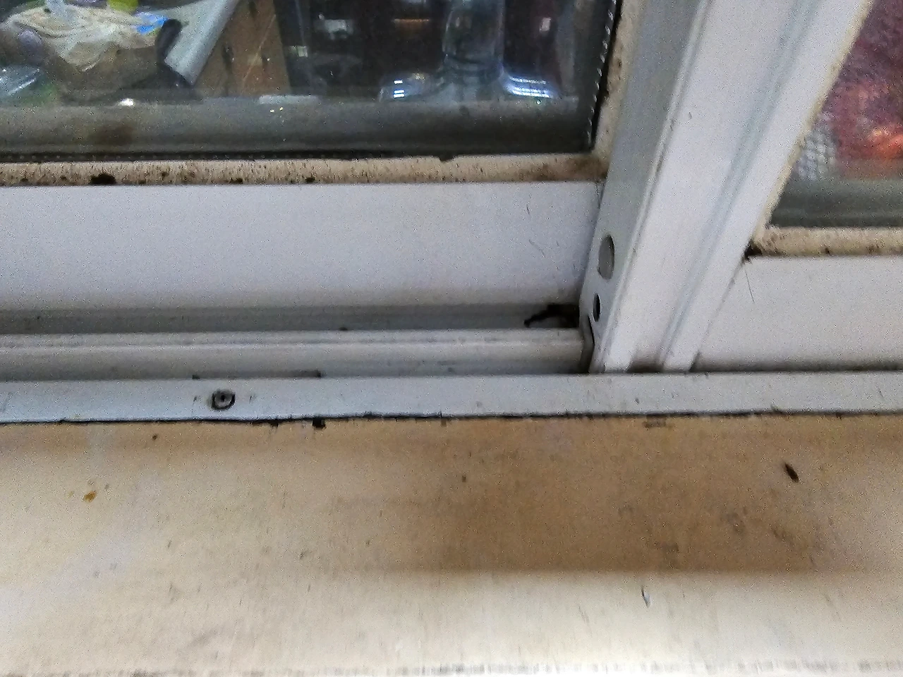 저 누런 실리콘이 까맣게 되어 있었다....창틀 바닥은 시커맸고..