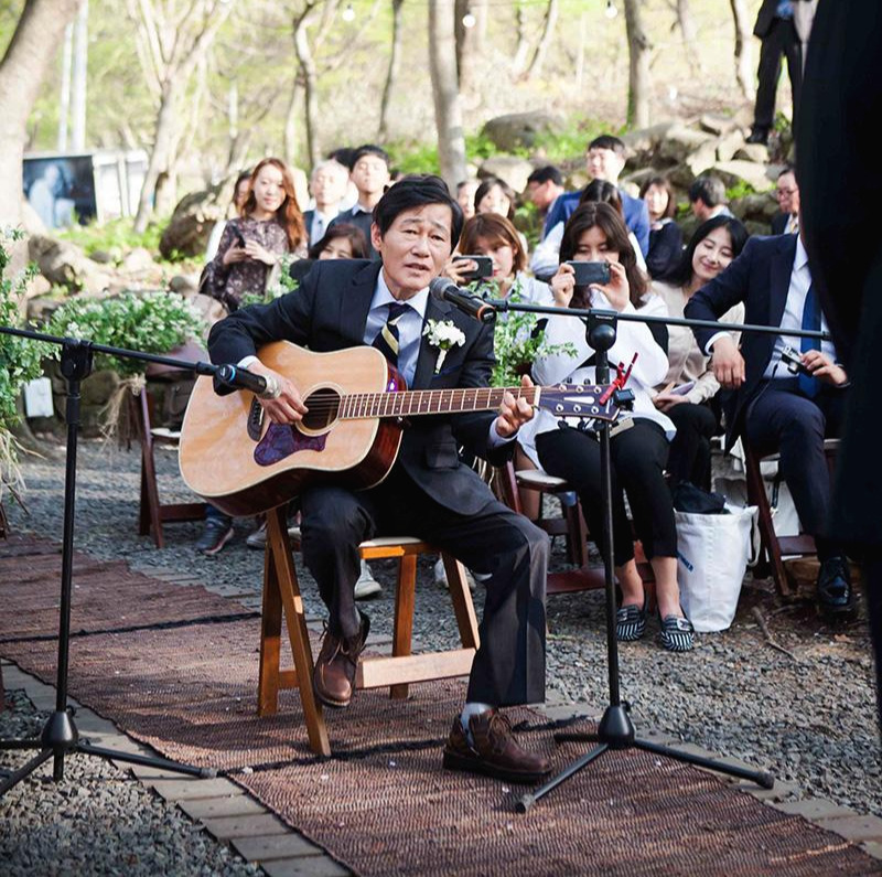 퇴직하시고 무료한 삶에 기타를 취미로 하셨는데 아빠가 제 결혼식날로 하여금 더 즐겁게 살 수 있는 계기가 되었음 해서 직접 부탁드렸어요. 흔쾌히 '사랑해 당신을'을 제 이름 '누리'를 넣어 개사해 불러 주셨어요.