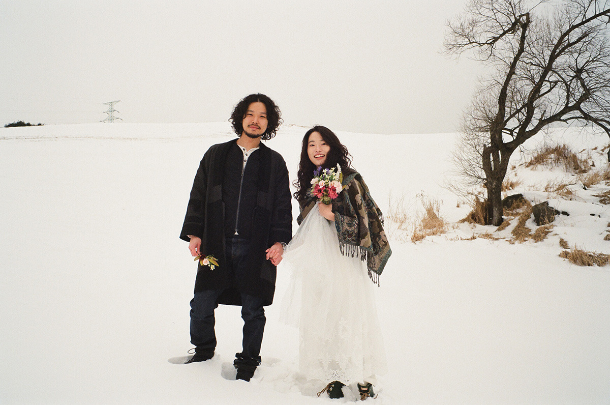 nuri 입시 때 셀프 촬영 작업을 했어서 어려울 건 없었어요. 평소 작업에서 한 명이 더 늘었을 뿐(웃음). 길 가다가 좋은 장소 있으면 찍고, 인터넷으로 저렴한 하얀 드레스 구입하고, 조화도 다이소에서 5천원 주고 만들었어요. 겨울에 찍은 사진에서는 신발도 헌터 신었나. 근데 뭐 별거 있나요. 제목만 웨딩이면 웨딩 사진이지 않나요?(웃음)