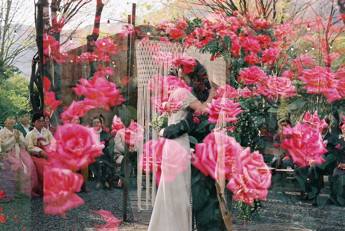 산속에서 결혼식을 올렸는데 이거 영감 받은 건가 아뇨(웃음) 제가 고향이 대구예요. 여기에는 야외에서 자유롭게 할 수 있는 곳이 한 군데밖에 없어서 자의 반 타의 반으로 산속에서 하게 된 거죠.