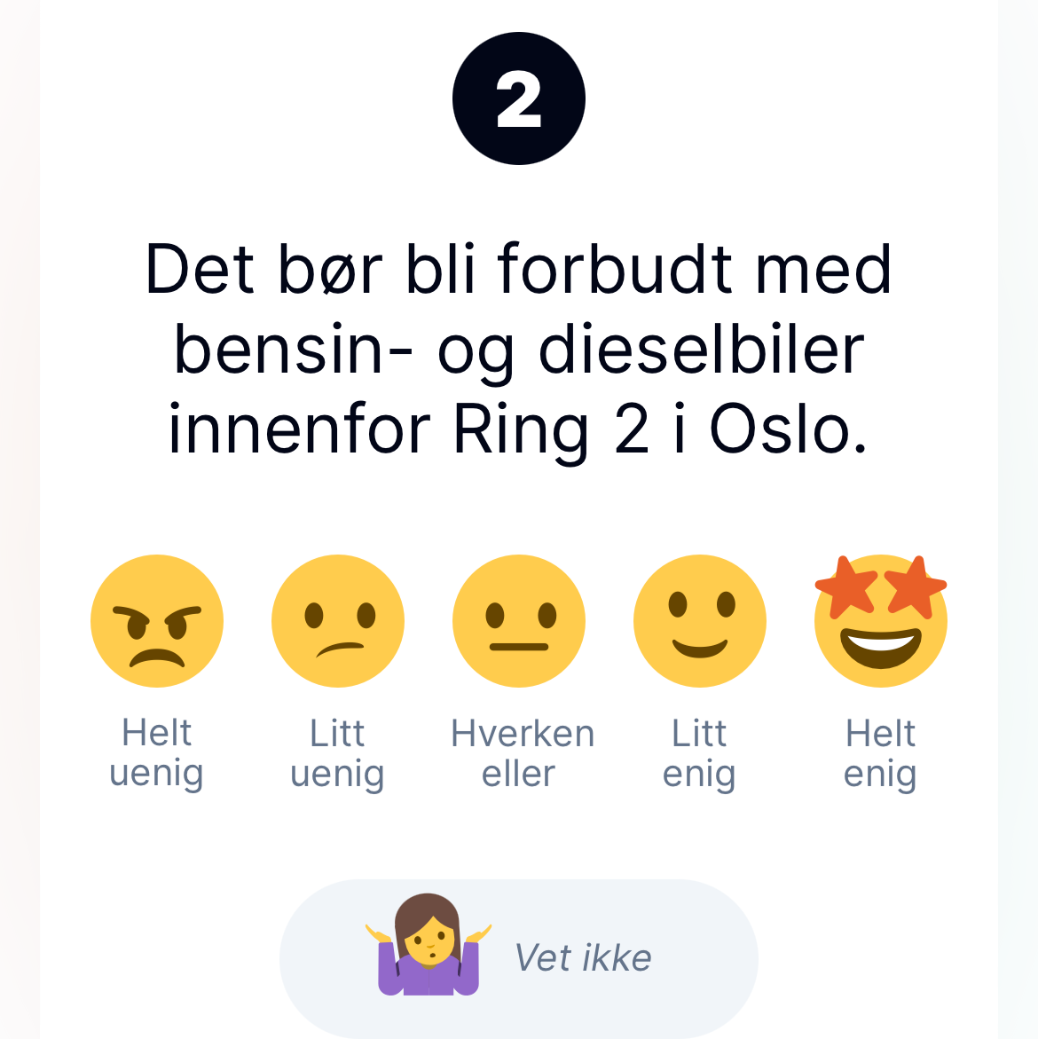 선거기간에 매우 여러 차례 정책토론을 하는 것도 인상적이긴 하지만, 면접 몇 번으로 훌륭한 신입사원을 뽑기가 어려운 것과 마찬가지로 낯선 후보자들 사이에서 옥석을 가려내는 것은 쉽지 않은 일이다. 이럴 때 사회적인 문제들을 질문 형식으로 만들어 어떤 정책을 선호하는 지를 스스로 체크하면 본인이 선택해야 하는 정당과 몇 %나 연관성이 있는지 알려주는 valgomat이라는 웹페이지는 우리나라에도 적극 소개하고 싶을 정도로 신선하다. 내가 받은 질문지는 총 15개의 문제로 구성이 되어 있는데, 이를테면 "오슬로의 교통체증을 줄이기 위해 시내로 들어오는 통행료를 올리는 것이 바람직한가"와 같은 질문에 매우 지지-다소 지지-중립-다소 반대-매우 반대 중 하나를 선택하는 식이다.