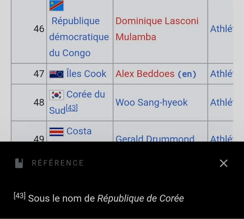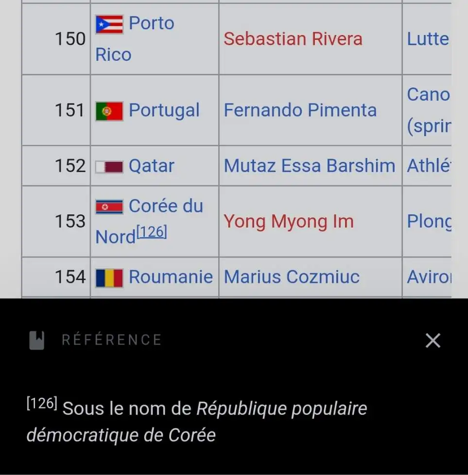 마지막으로 해당 사건과 관련해 프랑스 현지에서 보도된 기사 링크를 싣는다. 기사에 따르면 개회식의 장내 아나운서는 대한민국을 북한으로 호명했을 뿐 아니라, 수도인 서울이 상시 전쟁상황에 놓여 있다고 설명했다고 한다.