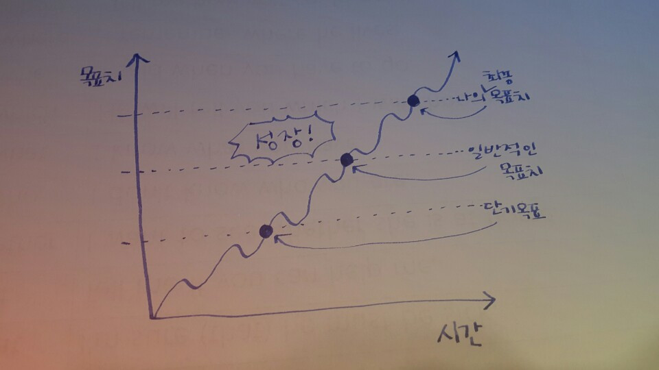 제가 이루어온 성장곡선이에요. 위의 그림처럼 오르락내리락하면서 성장해요. 계단식이란 말 아시죠? 분명 항상 좋지만은 않아요. 저도 좌절했던 시절, 포기하고 싶은 순간 정말 많았어요. 나 같은 사람이 정말로 가능할까 싶을 때도 수도 없이 많았죠. 하지만 분명한 건 계속해서 간다면 원하는 목표치까지 도달할 수 있고 그 성장 경험을 다른 삶에도 적용할 수 있는 자신감이 생기실 거예요.
