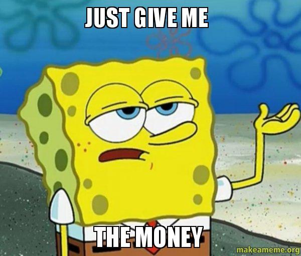 여기서는 '돈(the moeny)'이 더 중요한 정보예요. 눈 앞에 돈이 있길래 패스해 달라고 하는 뉘앙스 일수도 있고, 누가 돈을 가득 가득 가지고 일길래 그 돈좀! 나에게도 주지? 이런 느낌이에요.