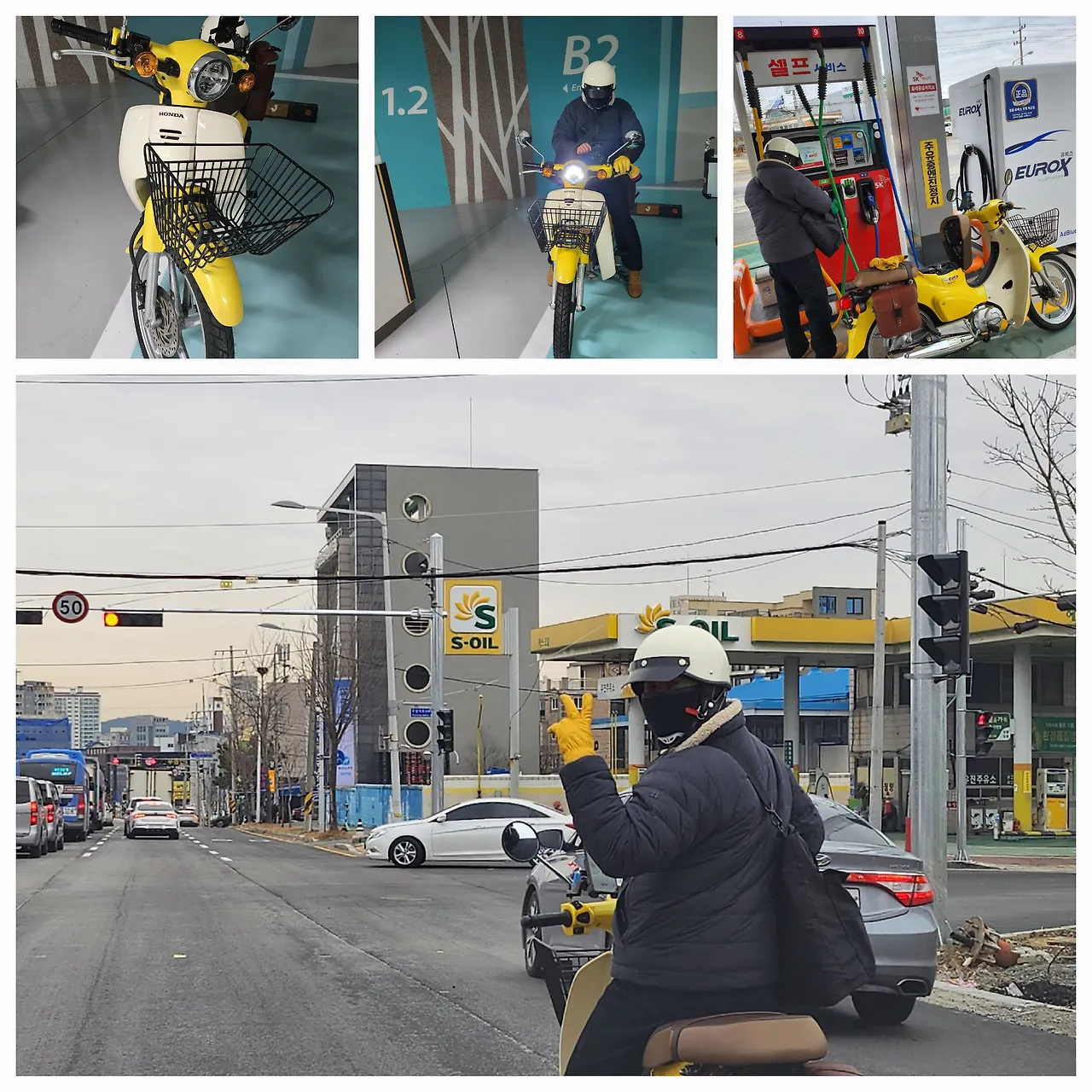 점심시간을 빌려 서둘러 오토바이가 주차된 곳으로 형님의 차를 타고 향했다. 무식하게 껴입은 옷 때문에 온몸은 미련 곰탱이처럼 주춤주춤을 반복했다. 보조석에 앉아서는 자세를 바꾸기도 힘겨울 정도라 가는 내내 가만히만 앉아 있었다. '야 이 멍청아. 꼭 이렇게까지 했어야 했냐?' 하는 나 자신을 향한 질타가 머릿속을 문득문득 때렸다. 그래! 나 이렇게까지 해서라도 널 데려왔어야 했어. 넌 내 오토바이니까! 자신의 안위만 생각한 형님이 히터를 빵빵하게 올려 땀이 삐질삐질 나오려는 찰나에 차는 오토바이를 세워둔 형님의 주차장으로 들어섰다. 저 멀리로 샛노랗게 예쁜 슈퍼커브의 모습을 보고는 또다시 주체할 수 없는 심장이 마구 날뛰는 것 같았다.