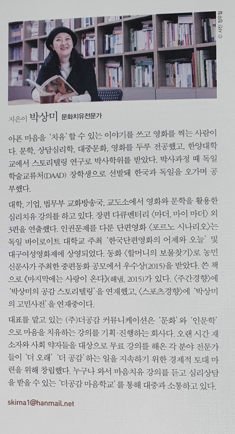 결국, 나는 이 책을 덮으면서 나의 인생 제 2막을 제대로 살아볼 수 있도록 격려해 주고 있는 멘토, 박상미교수를 새롭게 만난다. 앞으로 절대로 놓치지 않고 꼭 붙들고 갈 작정이다. 모두 굿럭♡